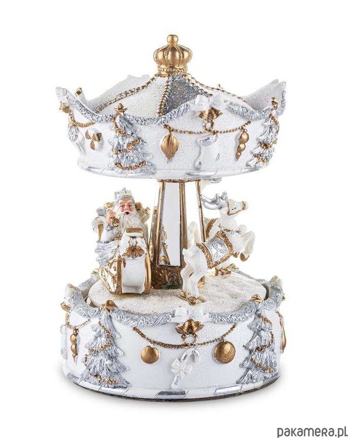 Pozytywka z motywami koników grająca świąteczne melodie. Wykonana z tworzywa sztucznego i PCV charakteryzuje się niezwykłą solidnością. Ustawiona w pokoju wprowadzi w nastrój zbliżających się świąt.