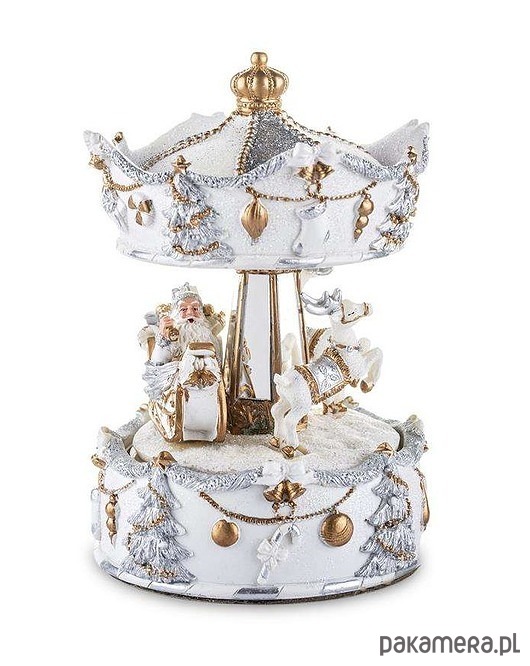 Pozytywka z motywami koników grająca świąteczne melodie. Wykonana z tworzywa sztucznego i PCV charakteryzuje się niezwykłą solidnością. Ustawiona w pokoju wprowadzi w nastrój zbliżających się świąt.
