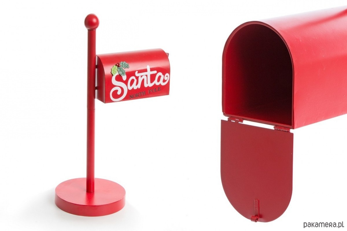 Piękna dekoracja w postaci skrzynki na listy na nodze. W skrzynce zostawiamy listy napisane do Świętego Mikołaja. Całość wykonana z metalu.
