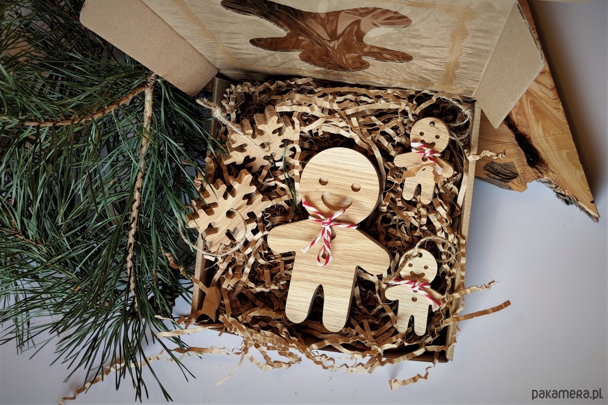 W okresie przedświątecznym, jak i w trakcie Świąt Bożego Narodzenia chcemy nieść radość. Stąd uśmiech, miłość oraz szczęście są hasłem przewodnim przygotowanych przez nas zestawów prezentowych. Uśmiechnięta dekoracja, symbolizująca troszkę bardziej trwałego "ludzika z piernika" w towarzystwie czterech klimatycznych ozdób choinkowych. Naturalne piękno w świątecznym ubranku.