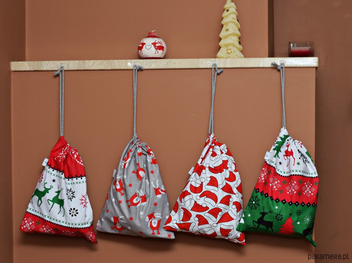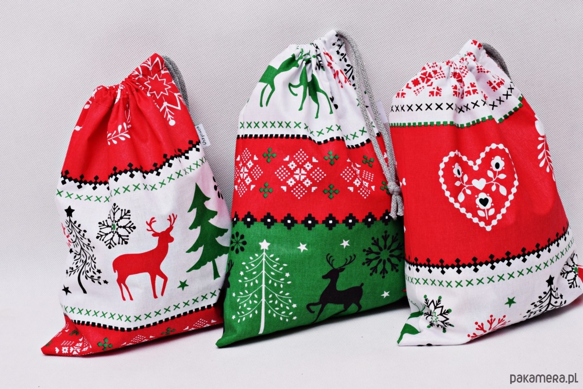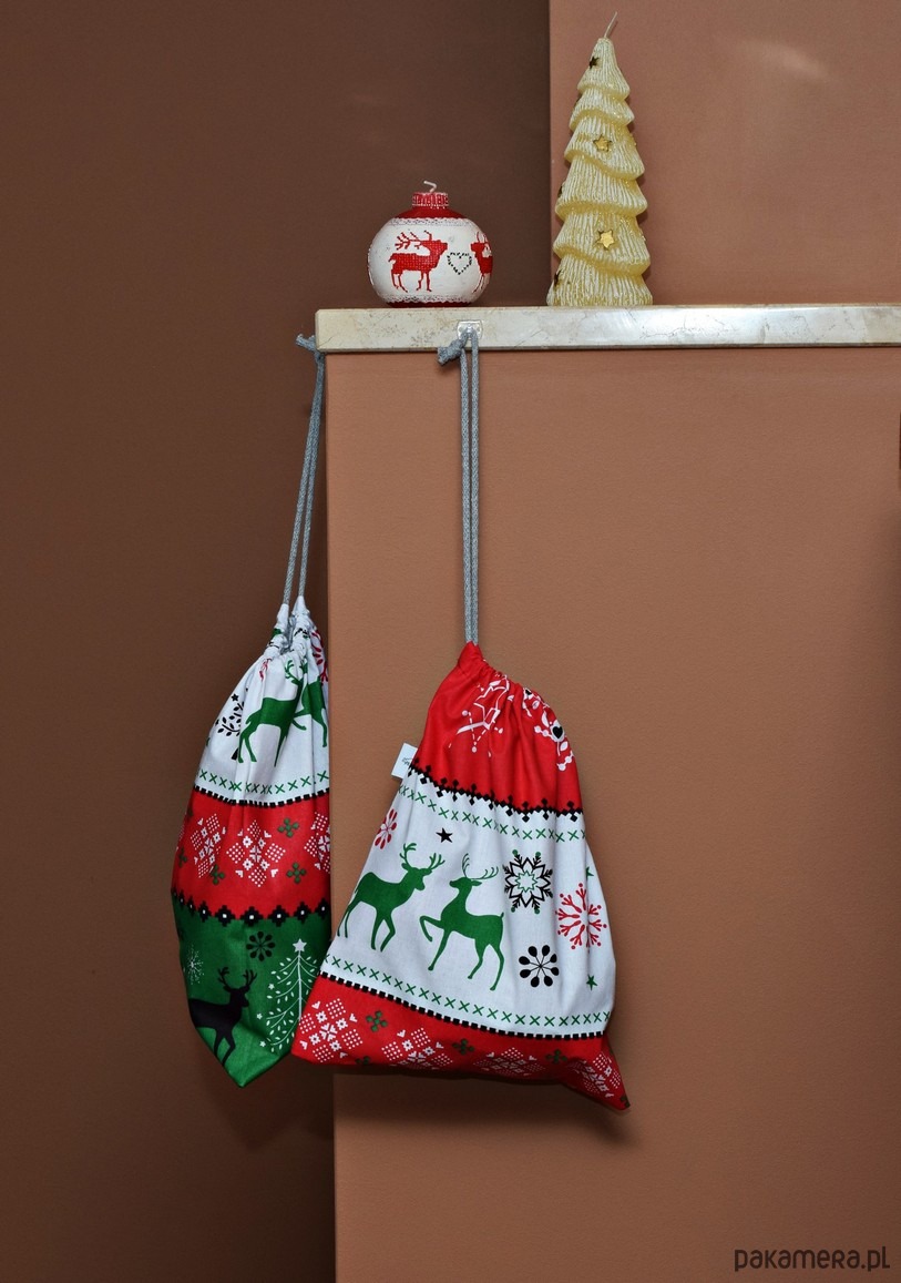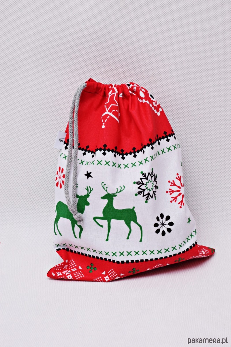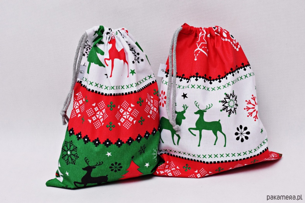 Worek na prezenty uszyty z bawełny 100% wzór imitujący skandynawski sweterek rozmiar M