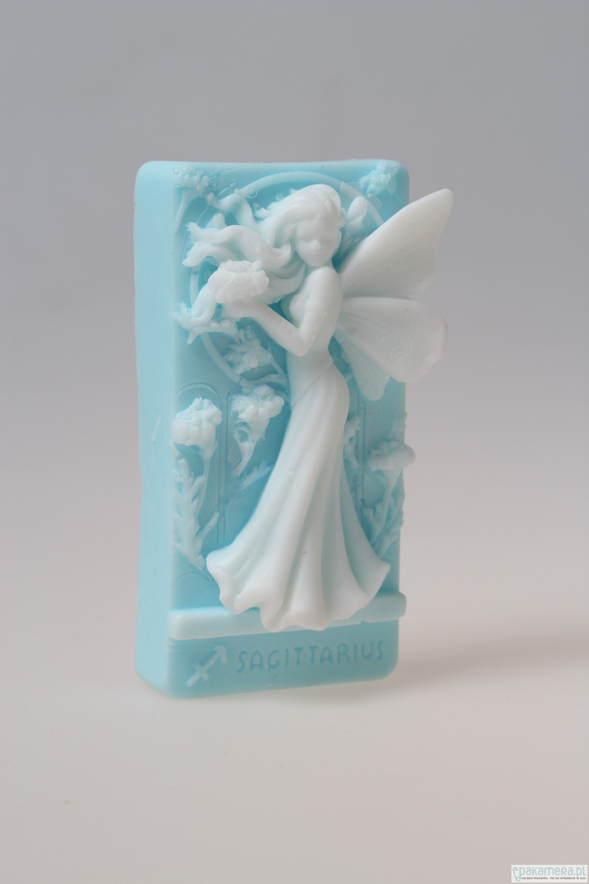 Mydełko Aniołek, wróżka o zapachu kwiatowym. Wymiary : 10 x 5 x 3 cm, waga 140 g. Wykonane z najwyższej jakości bazy mydlanej glicerynowej. Ma właściwości nawilżające i zmiękczające skórę. Nadaje się także dla wrażliwej skóry skłonnej do podrażnień. Dostępny kolor : niebieski, różowy, fioletowy