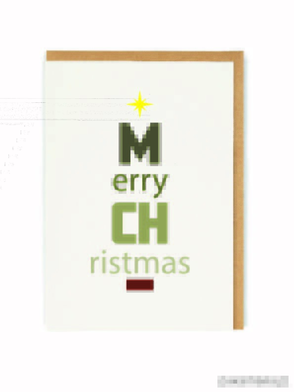 Kartka okolicznościowa z napisem świątecznym w kształcie choinki.