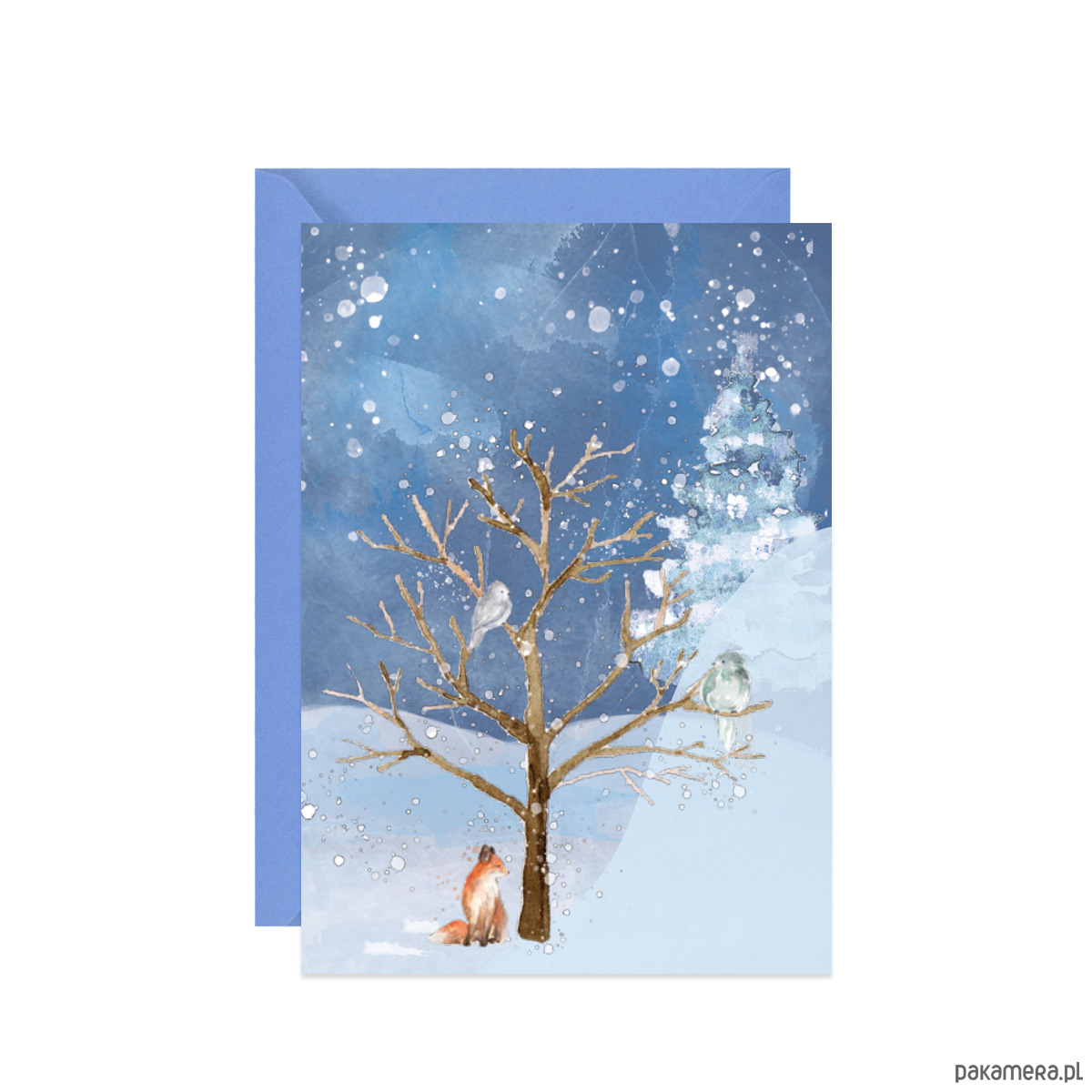 Świąteczna kartka z zimowym drzewem