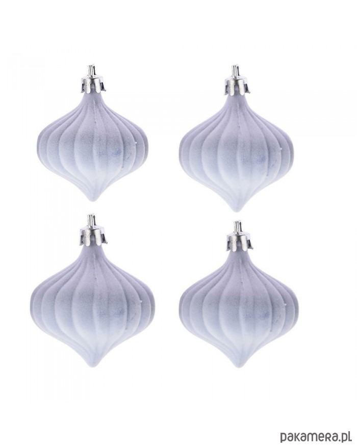 Komplet 4 sztuk nietłukących bombek. Wykonane z tworzywa, pokryte eleganckim welurem. Czas oczekiwania może ulec zmianie.