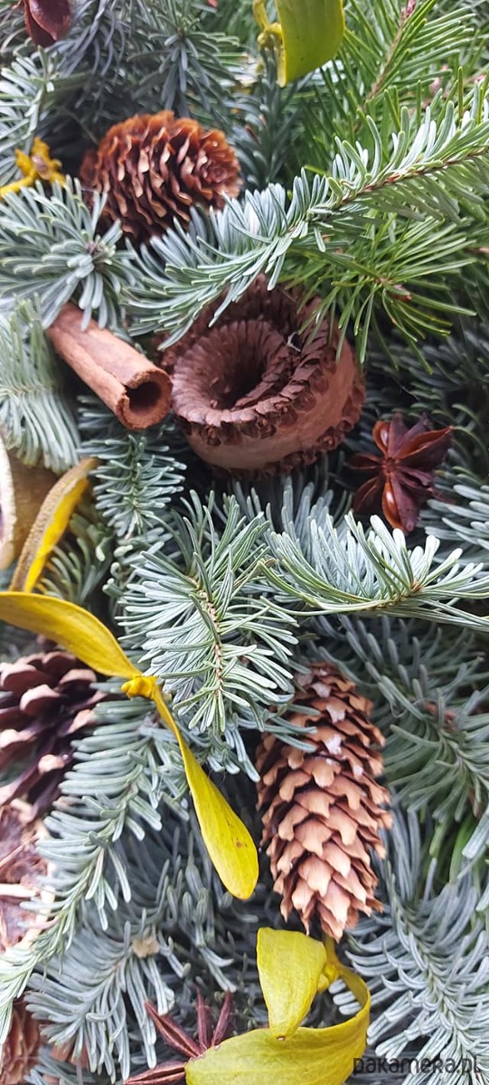 Jodła, szyszki , limonka,,cynamon, jemioła