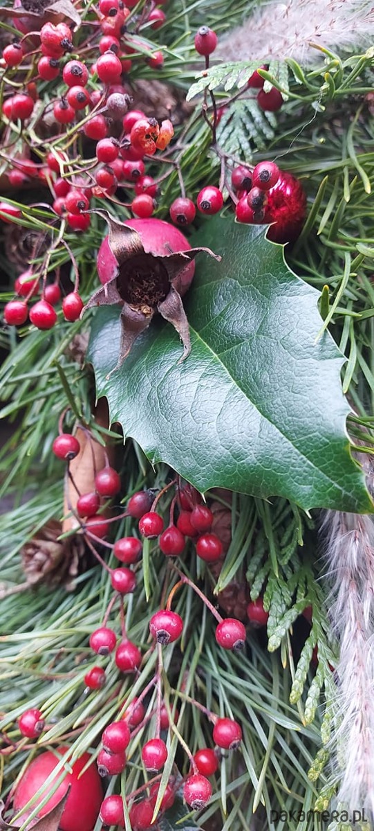 Sosna , owoce rózy , szyszki , ozdoby