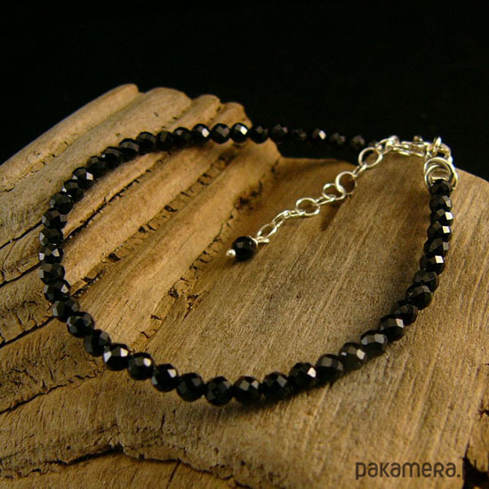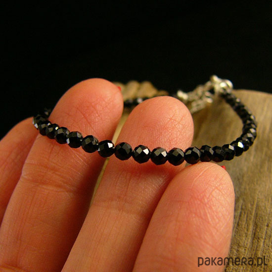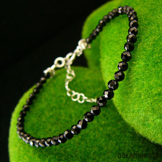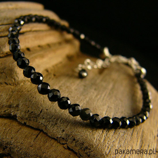 Klasyczna bransoleta wykonana ręcznie ze srebra próby 925 oraz przepięknych o idealnym szlifie , mikrofasetowanych naturalnych czarnych Turmalinów w rozmiarze 3 mm. Bransoleta jest z regulacją, więc pasuje na każdy nadgarstek, mogę ją dopasować specjalnie dla Ciebie. Polecam Nehesi