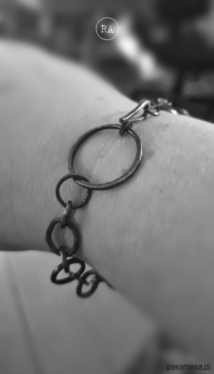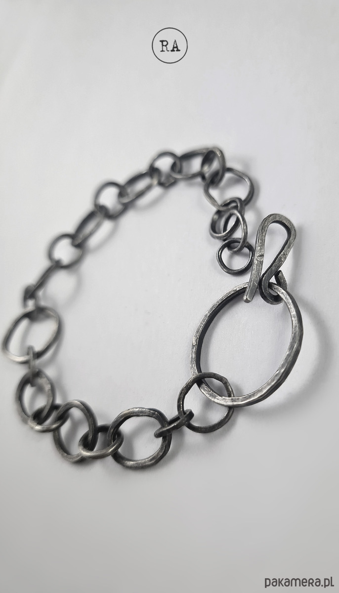 Bransoleta wykonana ze srebra, oksydowana.