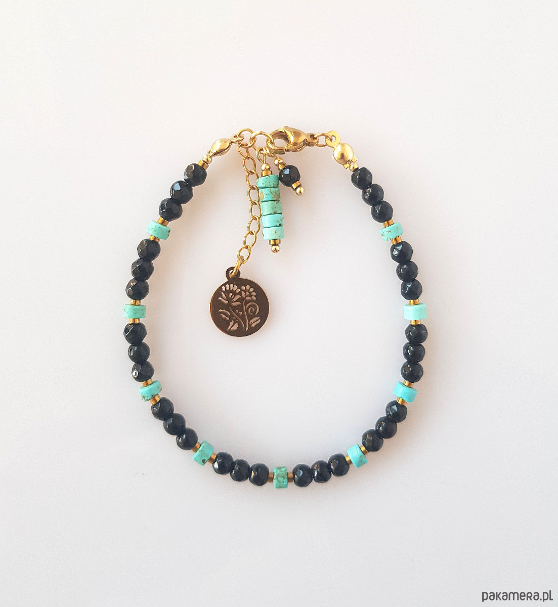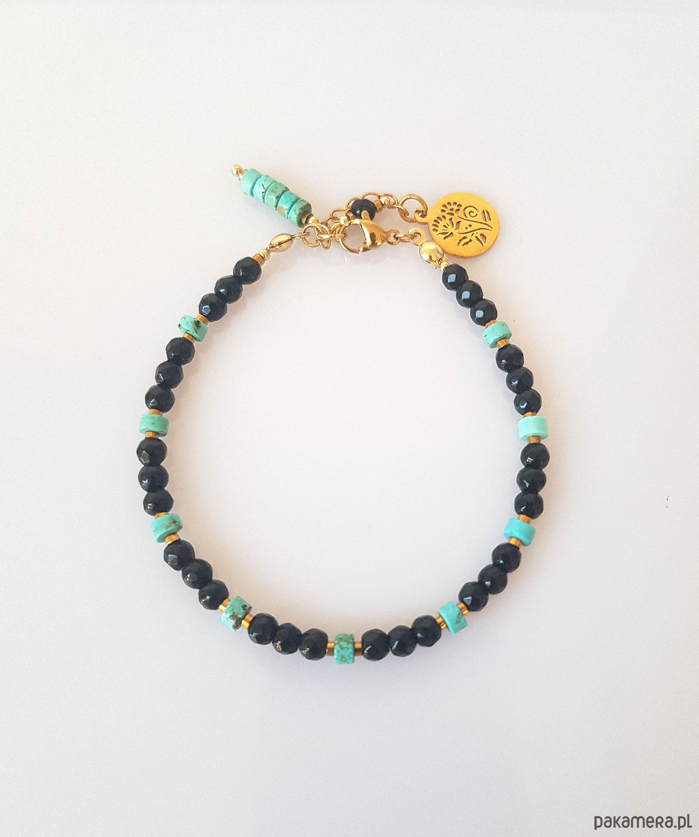 Bransoletka Czarno Turkusowa Złota