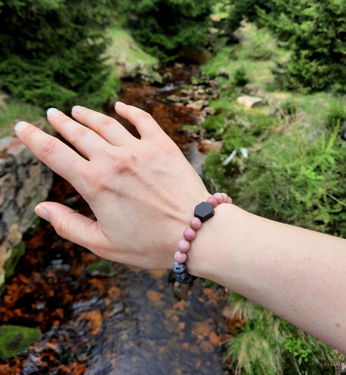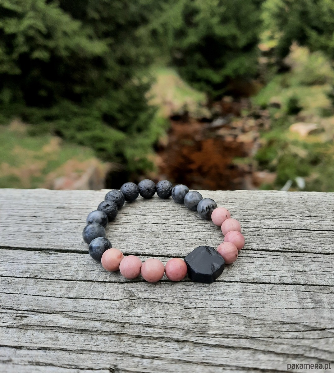 Bransoleta Kobieca PINK czarny turmalin różowy rodochrozyt amulet
