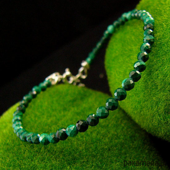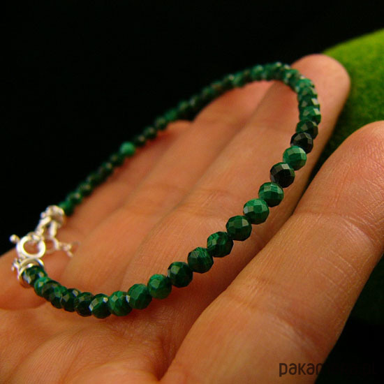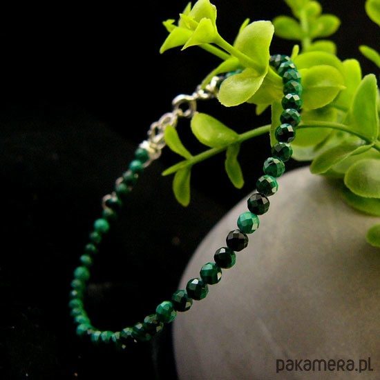 Delikatna bransoleta wykonana ręcznie ze srebra próby 925 oraz surowych naturalnych Malachitów o średnicy 4 milimetrów. Bransoleta jest z regulacją, więc pasuje na każdy nadgarstek. Polecam Nehesi