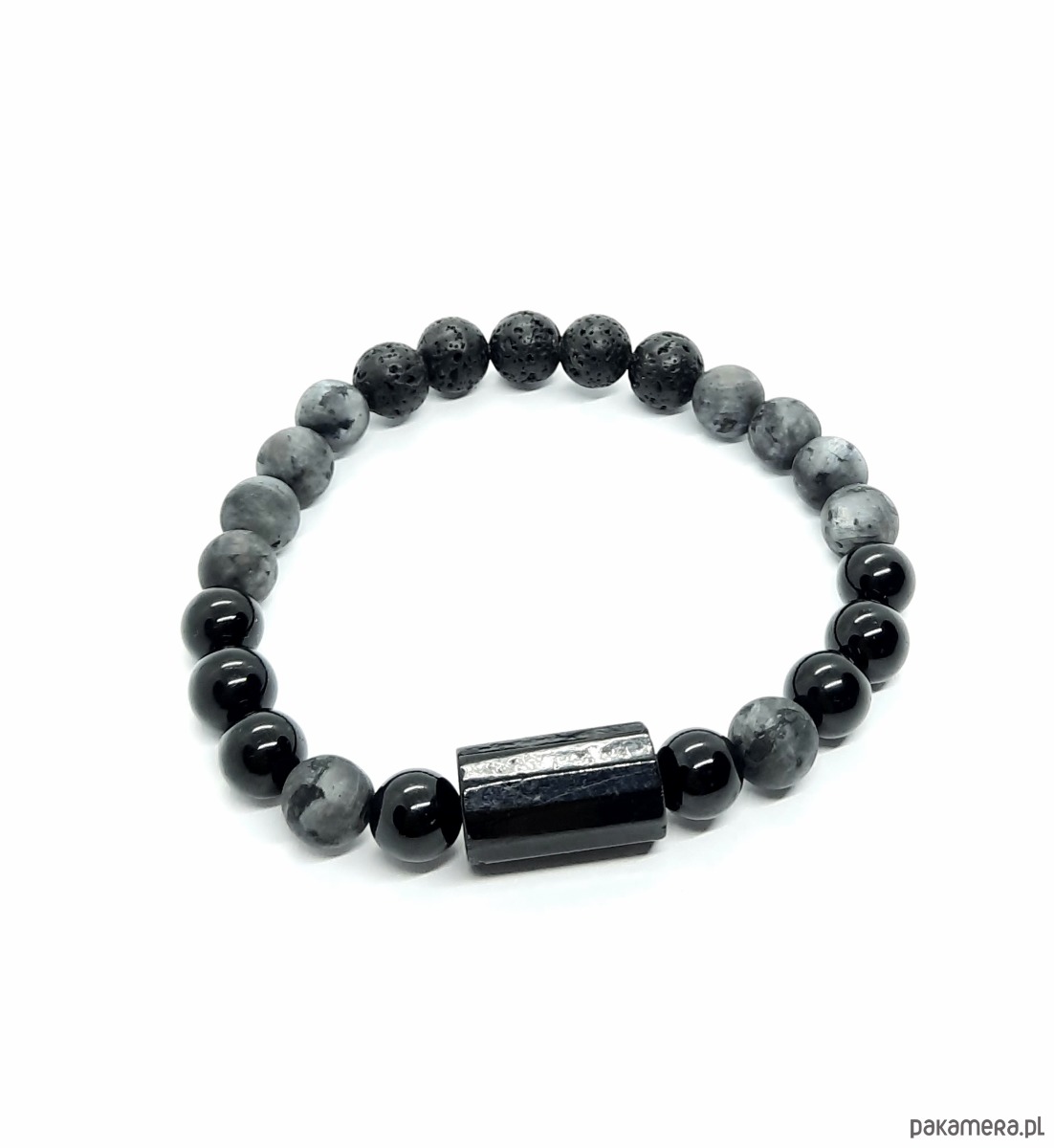 materiał: naturalny czarny turmalin, larvikit, lawa wulkaniczna