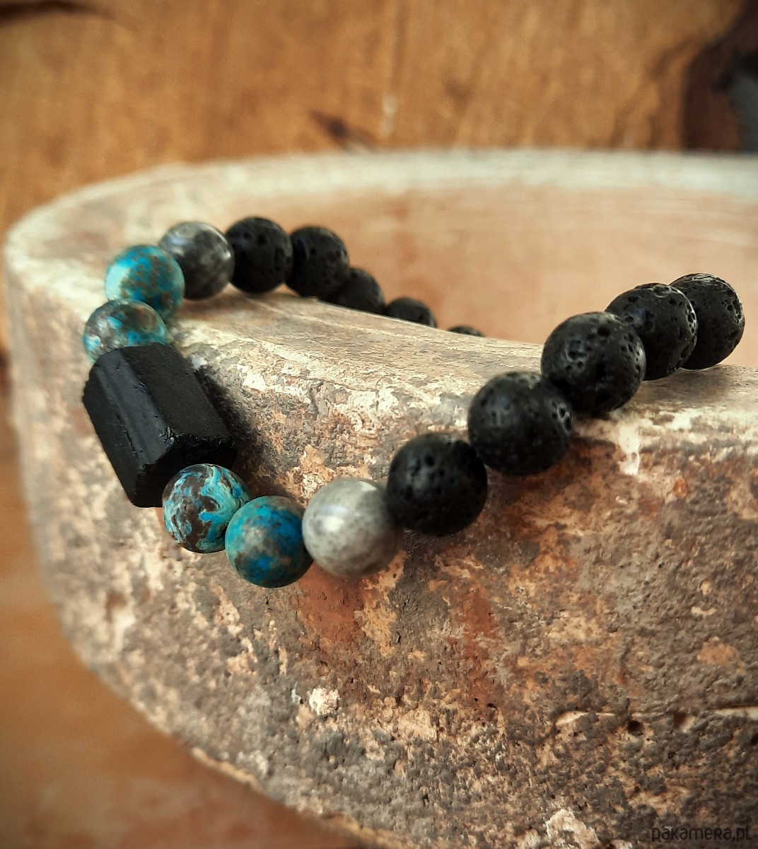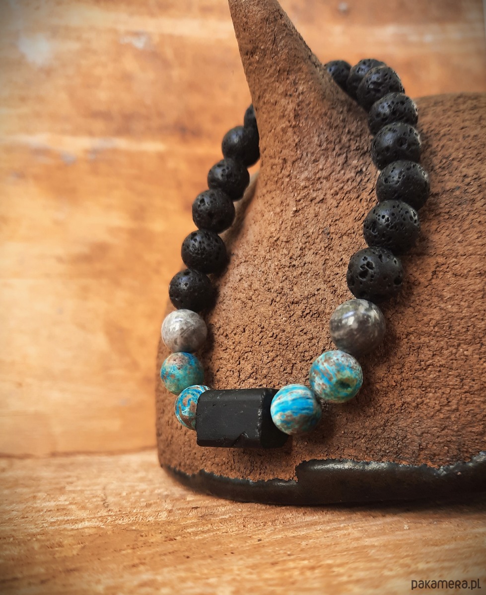 materiał: naturalny czarny turmalin, jaspis cesarski , jaspis szary, lawa wulkaniczna