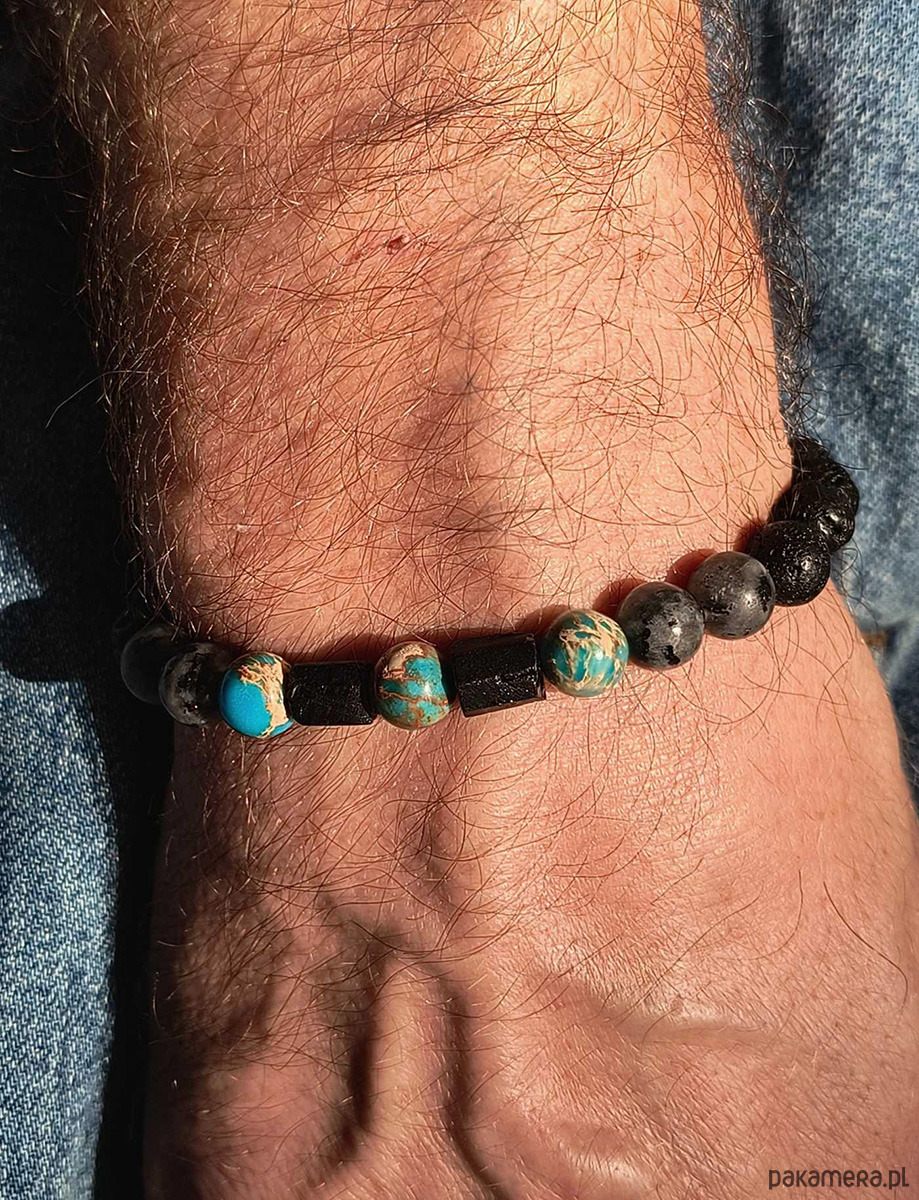 materiał: naturalny czarny turmalin, jaspis cesarski , jaspis szary, lawa wulkaniczna