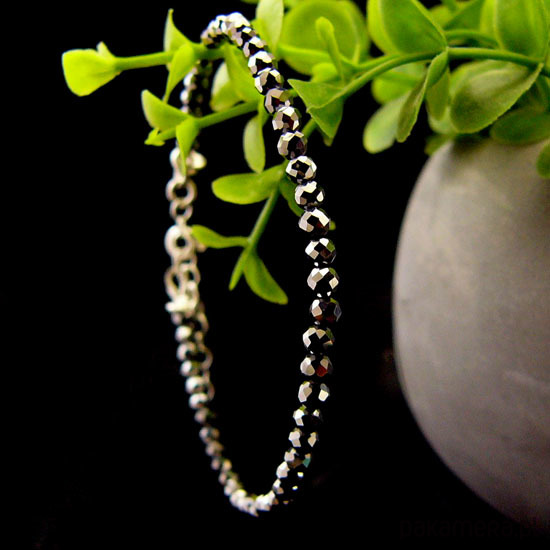 Delikatna bransoleta wykonana ręcznie ze srebra próby 925 oraz fasetowanych Terahertzów o średnicy 3 mm milimetrów. Bransoleta jest z regulacją, więc pasuje na każdy nadgarstek. Dlaczego Bransoleta ma nazwę NASA? - poczytajcie o Terahertzie :) Polecam Nehesi