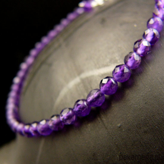 Piękna bransoleta wykonana ręcznie ze srebra próby 925 oraz przepięknych o idealnym szlifie mikrofasetowanych naturalnych Ametystów rozmiar około 4 mm. Ametyst jest kamieniem medytacji, uspakaja nerwy, napięcie, uzdrawia duchowo. Bransoleta jest z regulacją, więc pasuje na każdy nadgarstek, mogę ją dopasować specjalnie dla Ciebie, sama mam miniaturowy nadgarstek i zawsze potrzebuję zmniejszenia obwodu . Polecam Nehesi