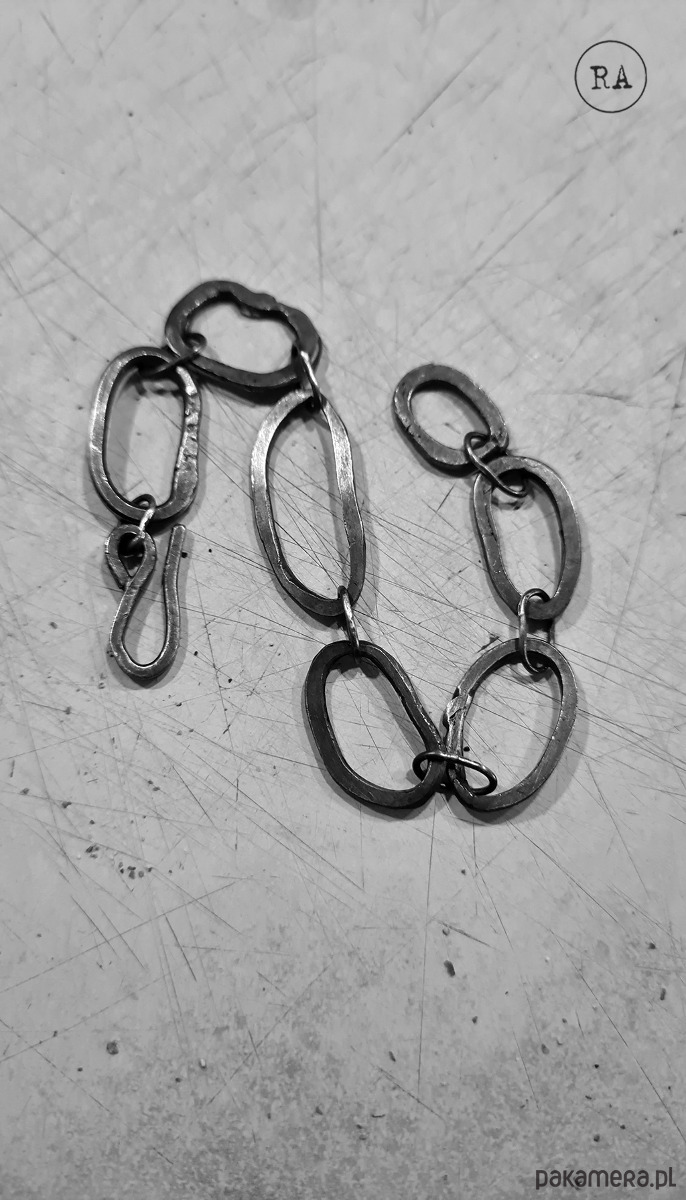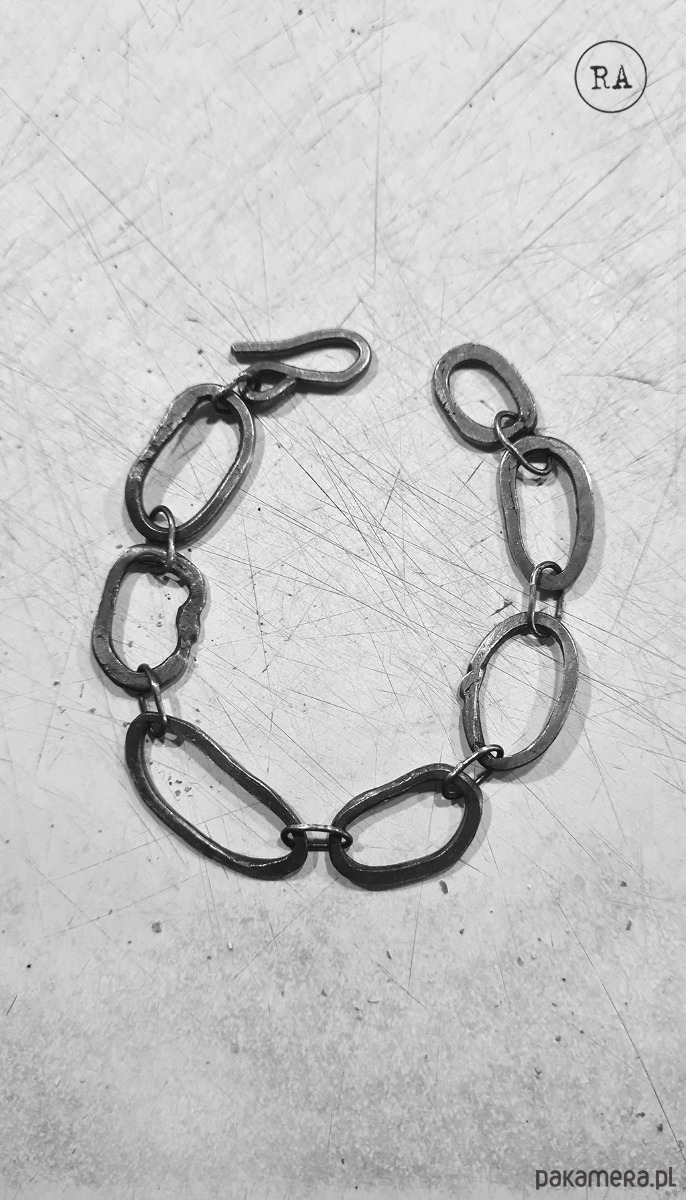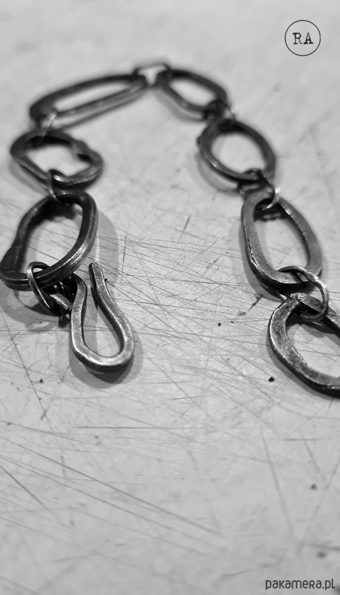 Bransoleta srebro kute ręcznie, oksydowane, 20,5cm