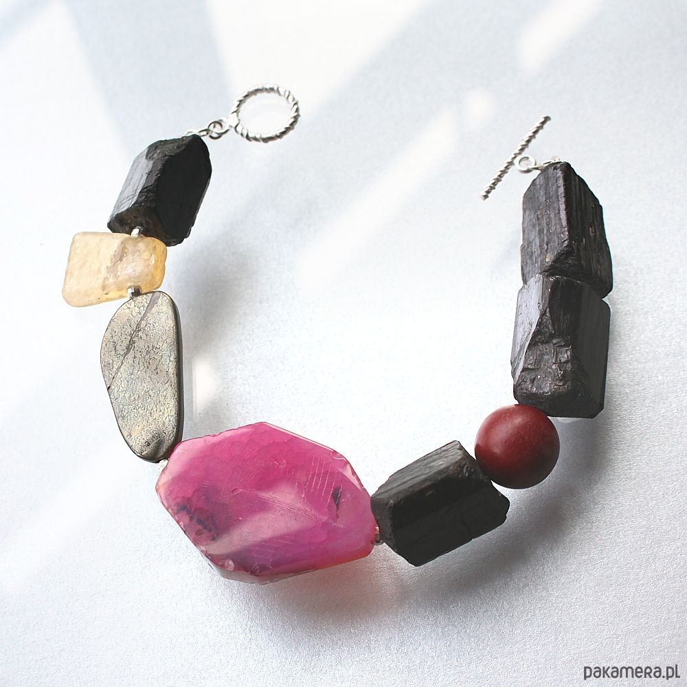 Bransoleta surowy turmalin, cynober, cytryn, piryt, agat