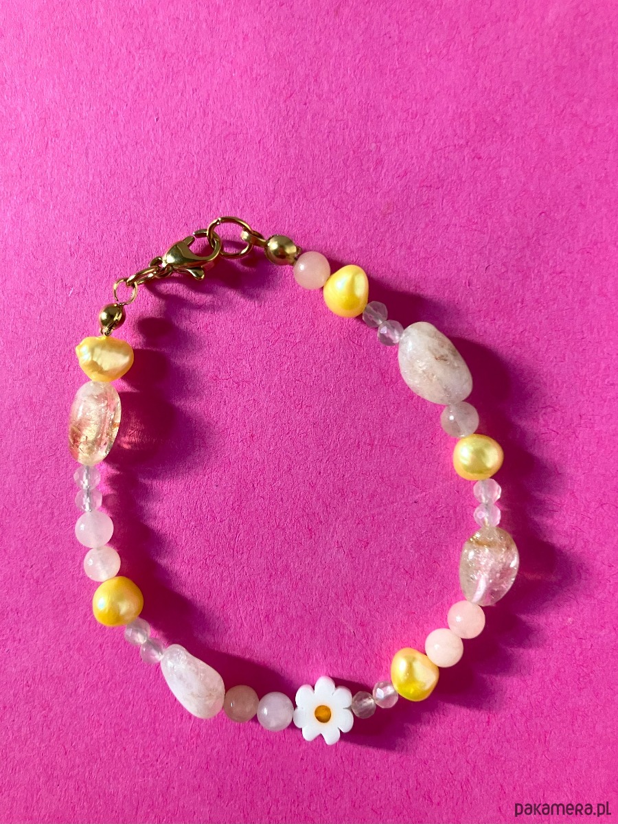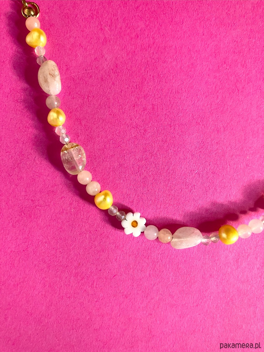 Skład: perła słodkowodna, cytryn, kamień księżycowy, awenturyn brzoskwiniowy