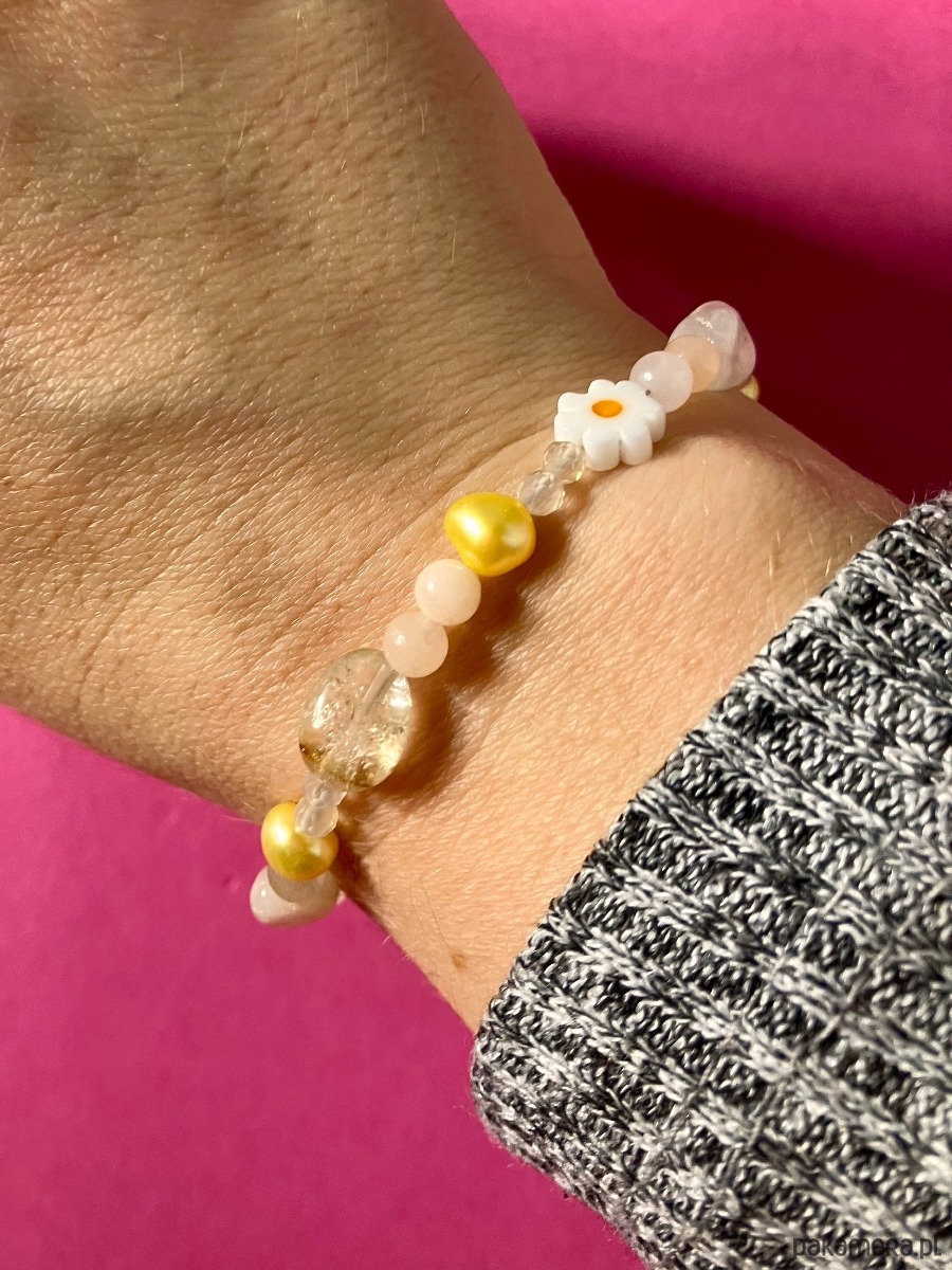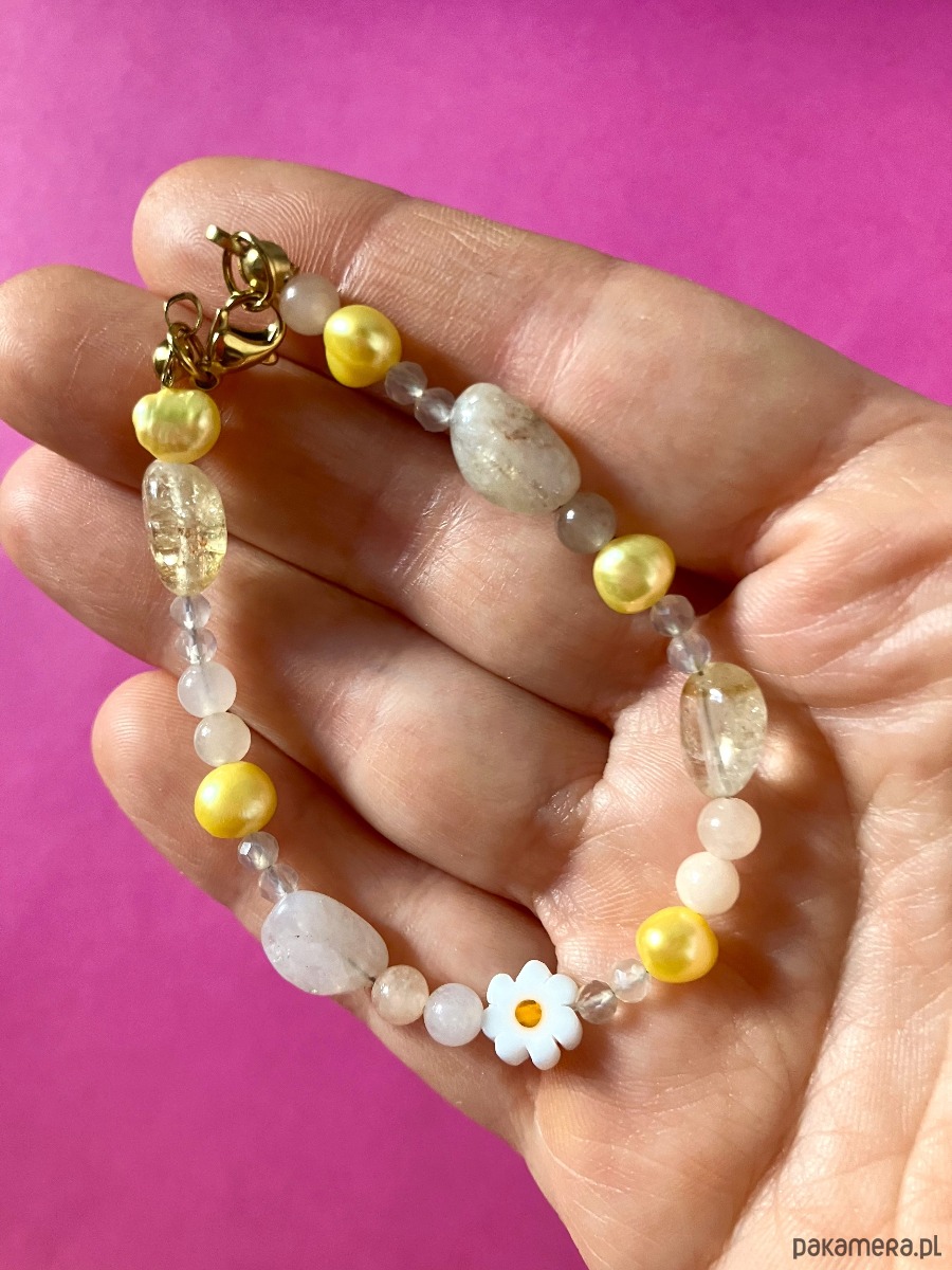 Bransoletka w przepięknych z kamieni z drobnym kwiatuszkiem
