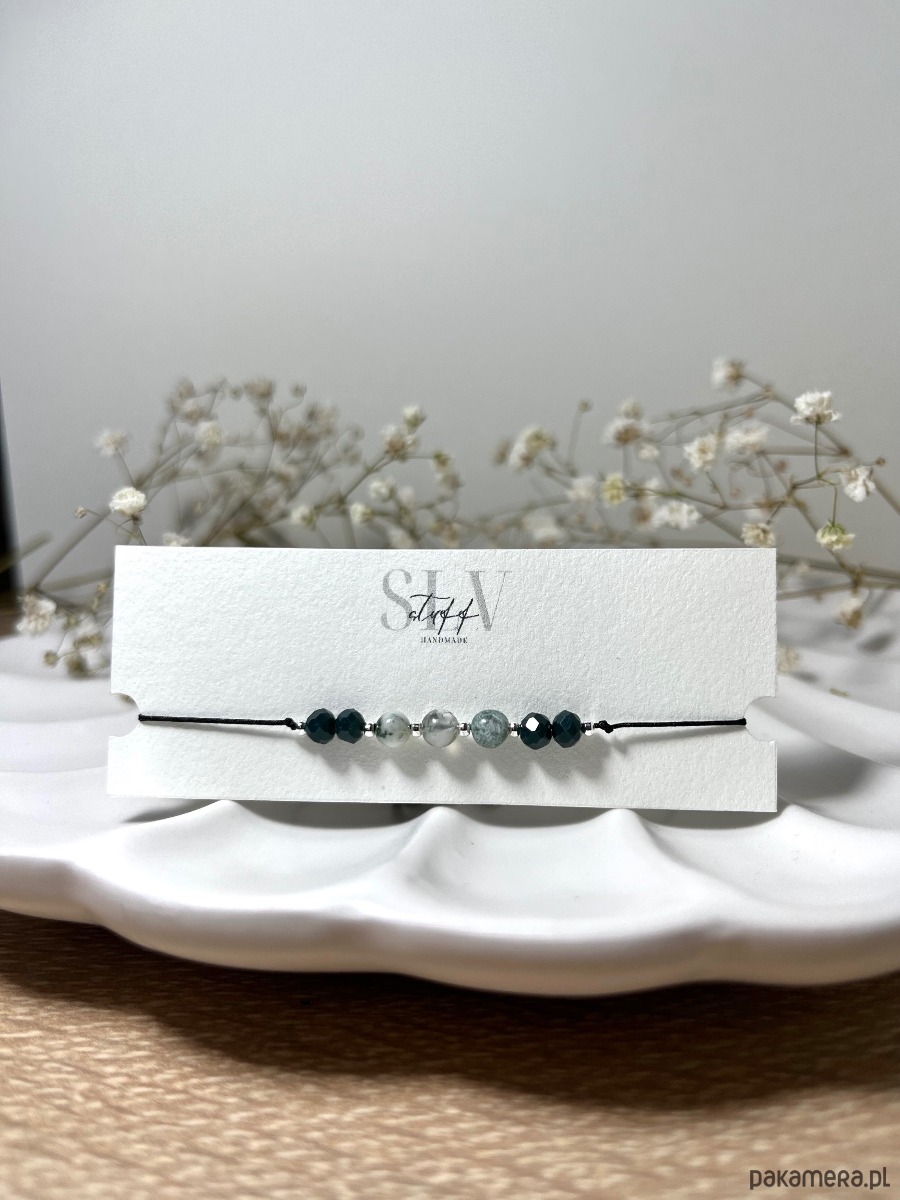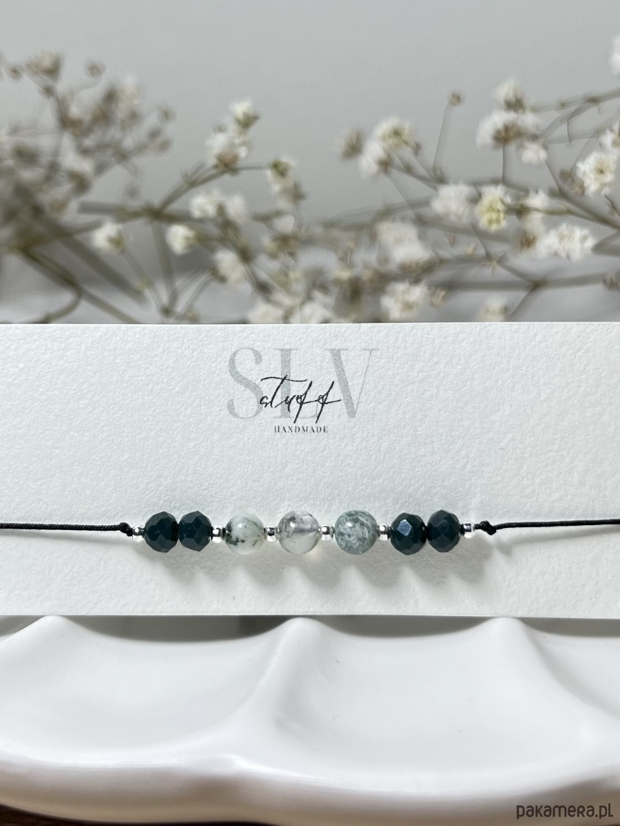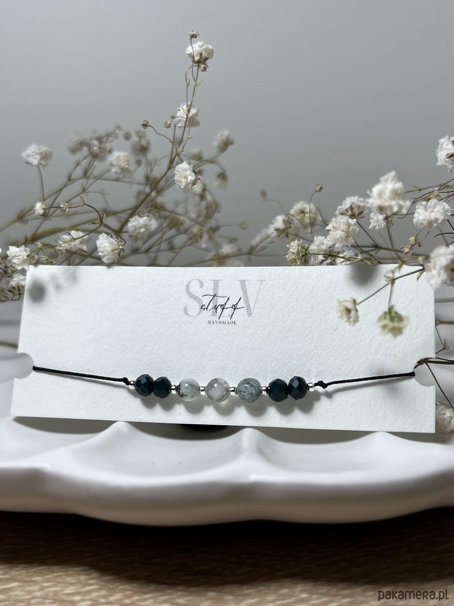 Bransoletka ręcznie wykonana z koralików oraz kamieni naturalnych - agatu mszystego.