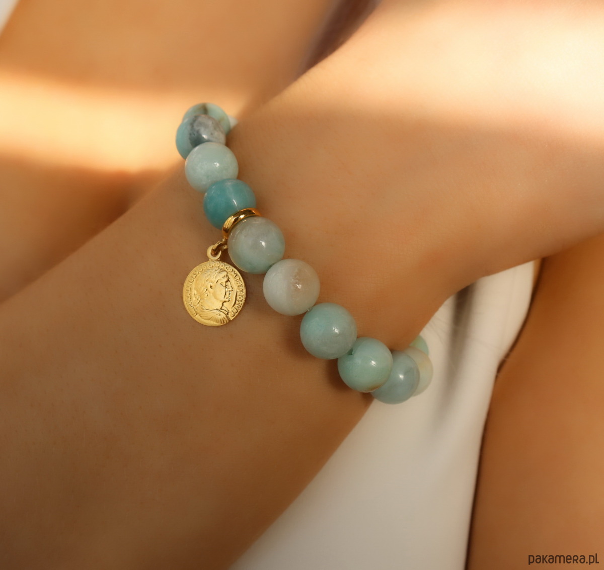 Bransoletka amazonit moneta- srebro 925 pozłacane