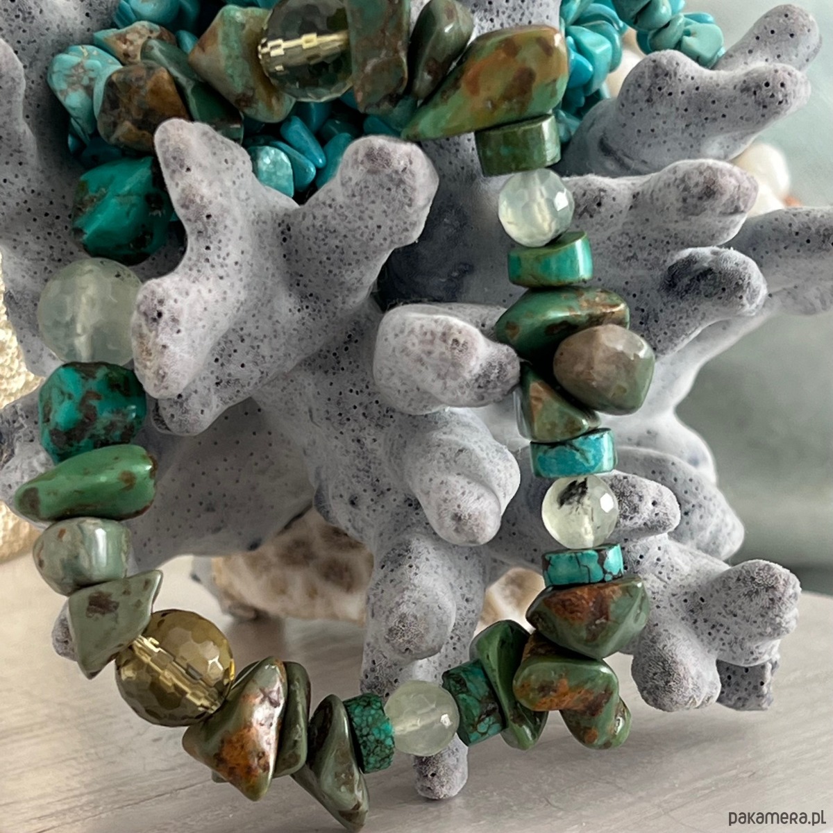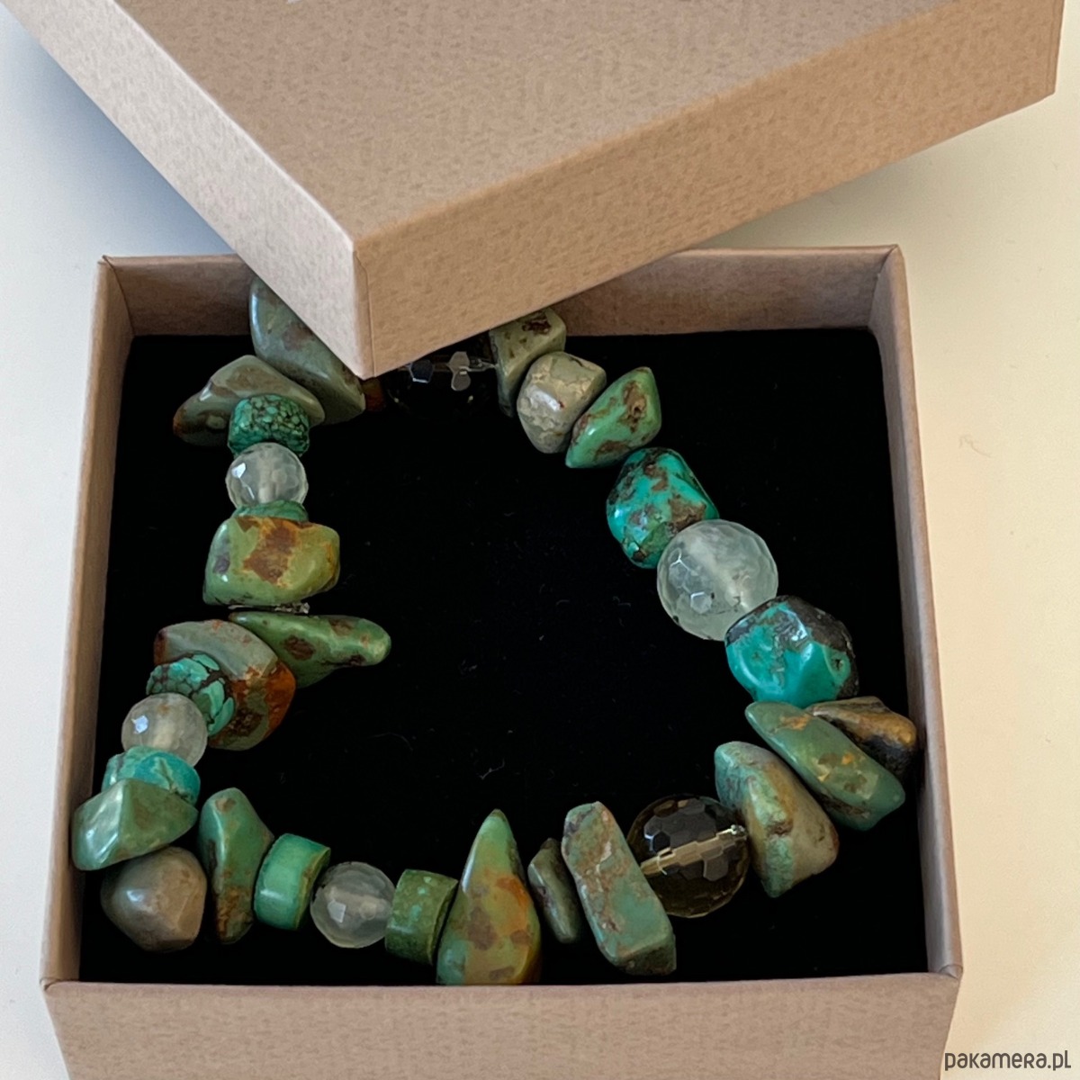BRANSOLETKA - AMULET - Turkus, kwarc dymny,