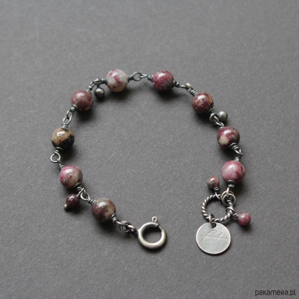 Bransoletka wykonana została z oksydowanego srebra próby 925 oraz kulek turmalinów wielkości 0,7 cm.