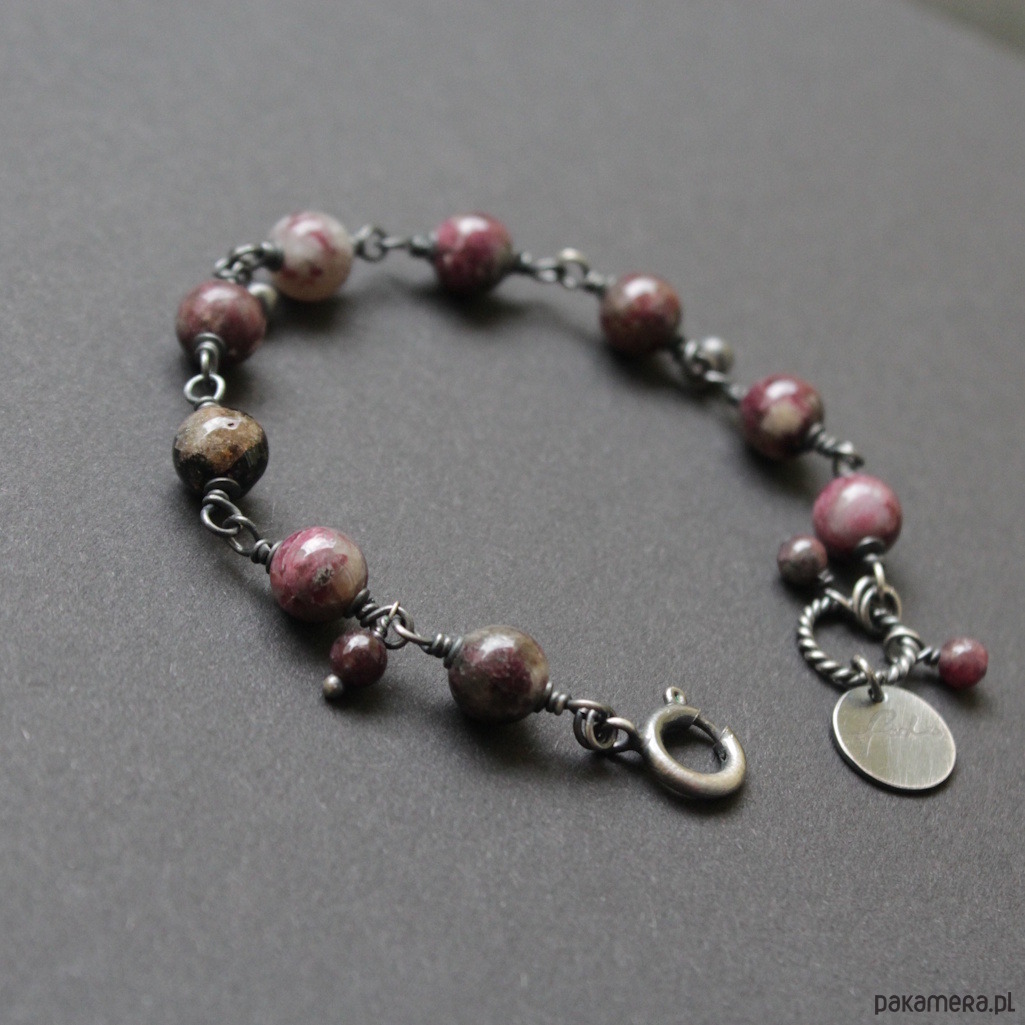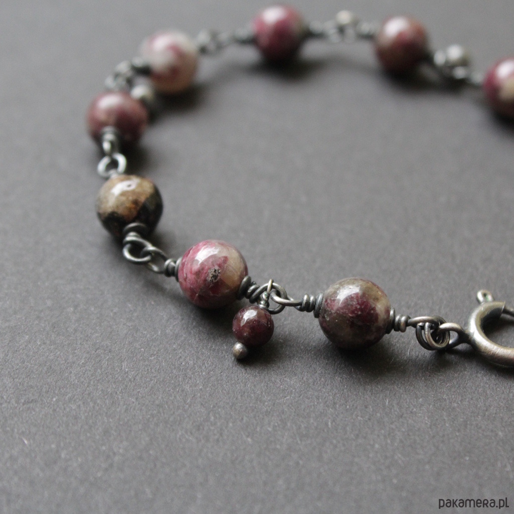 Bransoletka wykonana została z oksydowanego srebra próby 925 oraz kulek turmalinów wielkości 0,7 cm.
