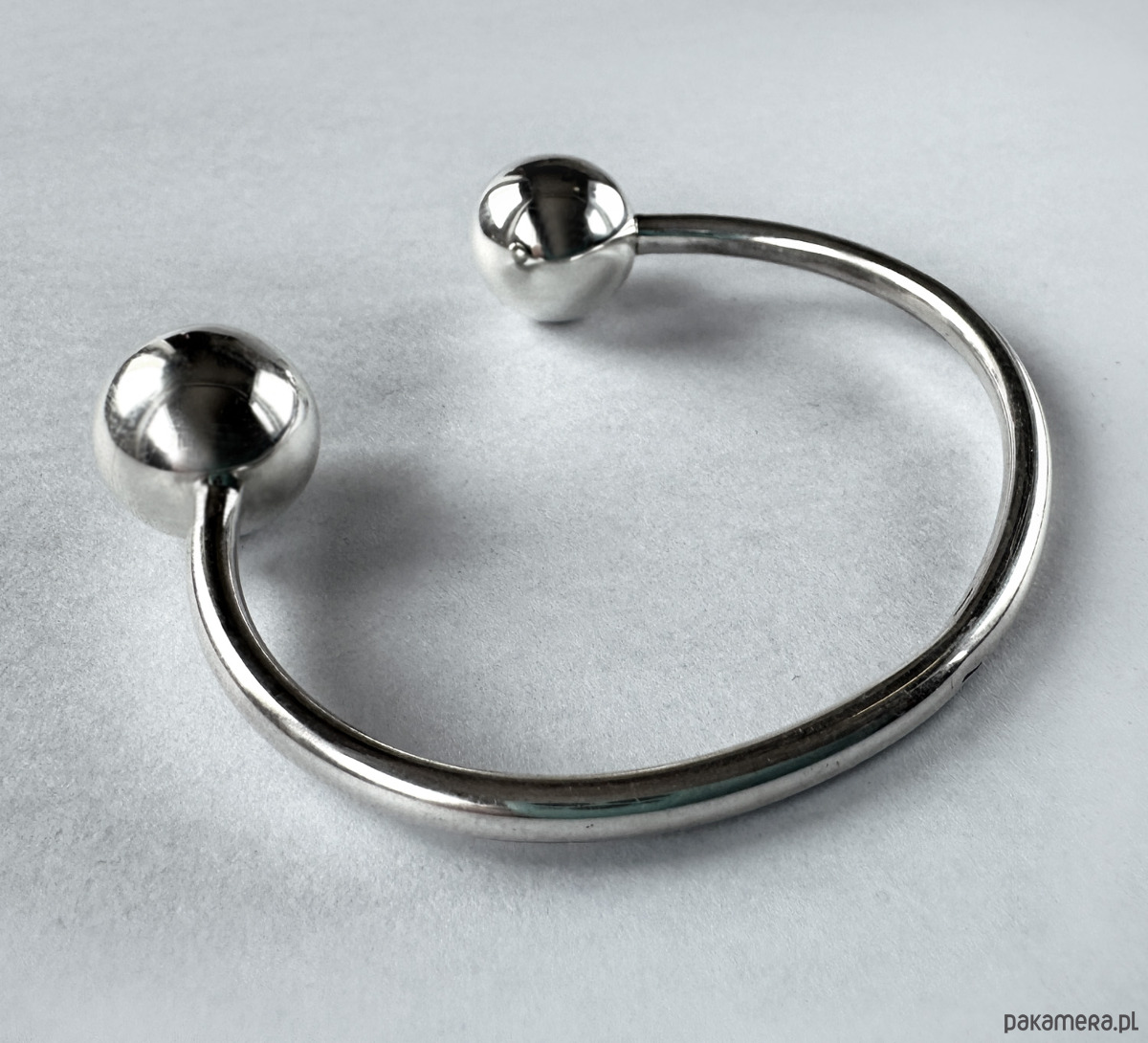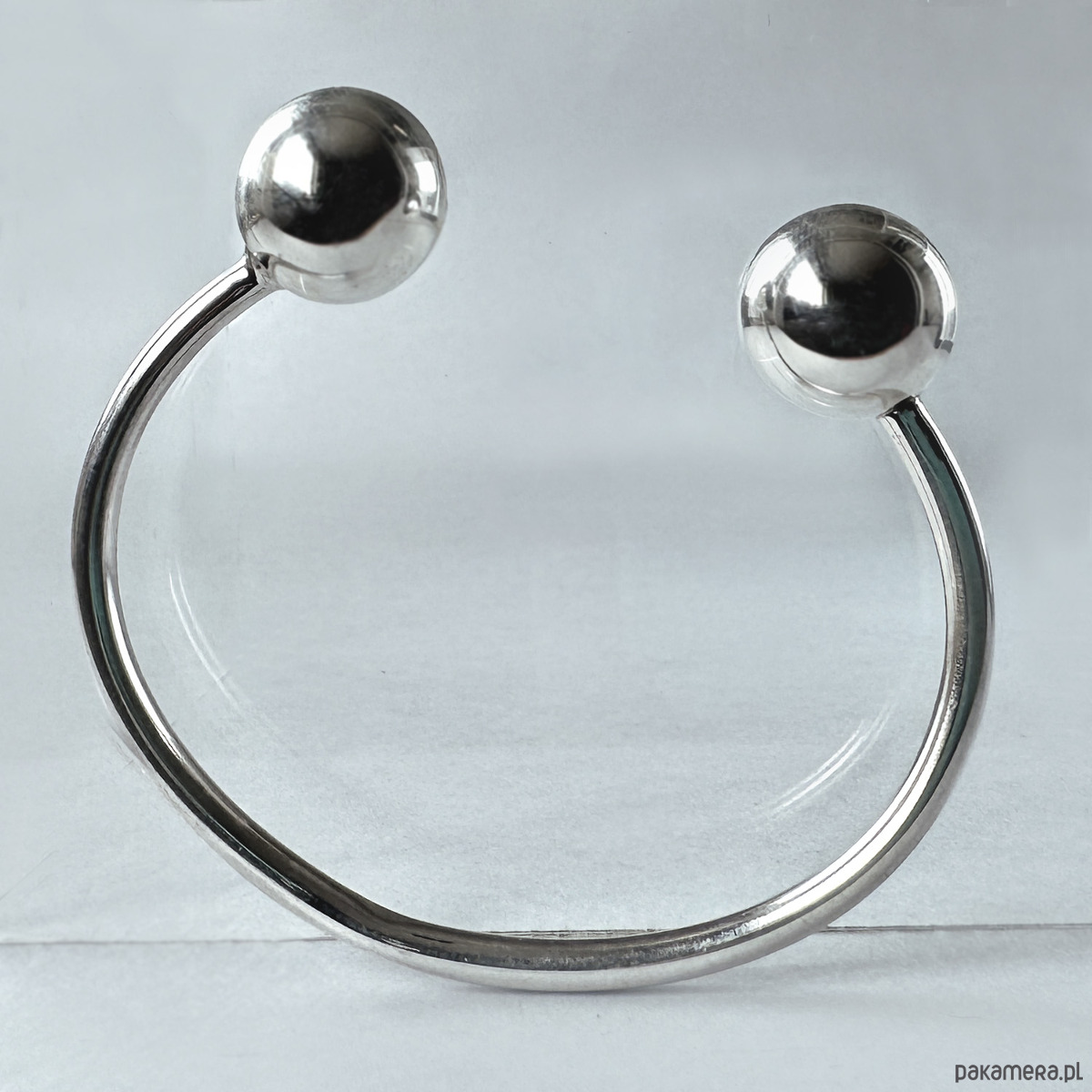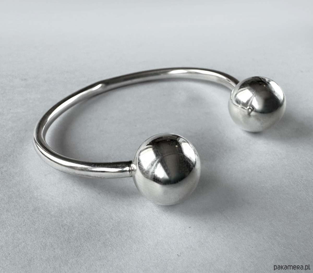 Srebrna otwarta bransoletka z dwiema kulkami 16 mm
