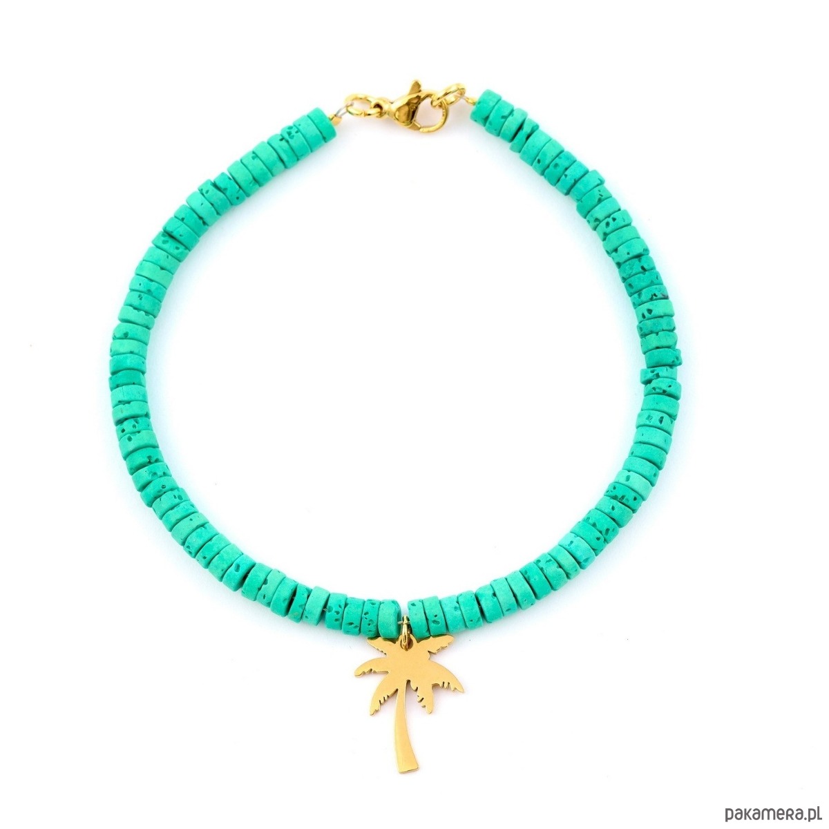 Bransoletka wykonana jest z naturalnej lawy wulkanicznej dobarwianej kwarcem.