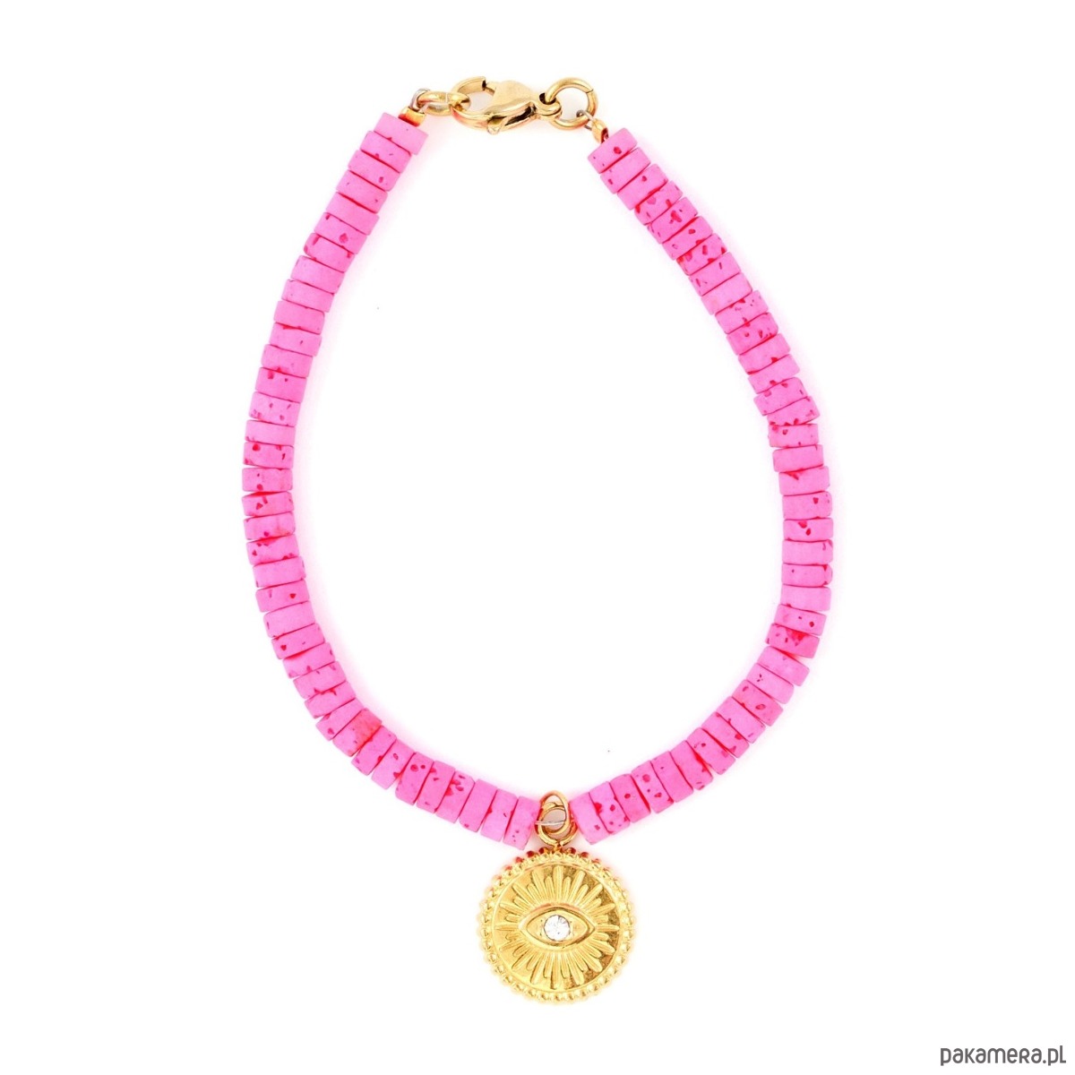 Bransoletka wykonana jest z naturalnej lawy wulkanicznej dobarwianej kwarcem.