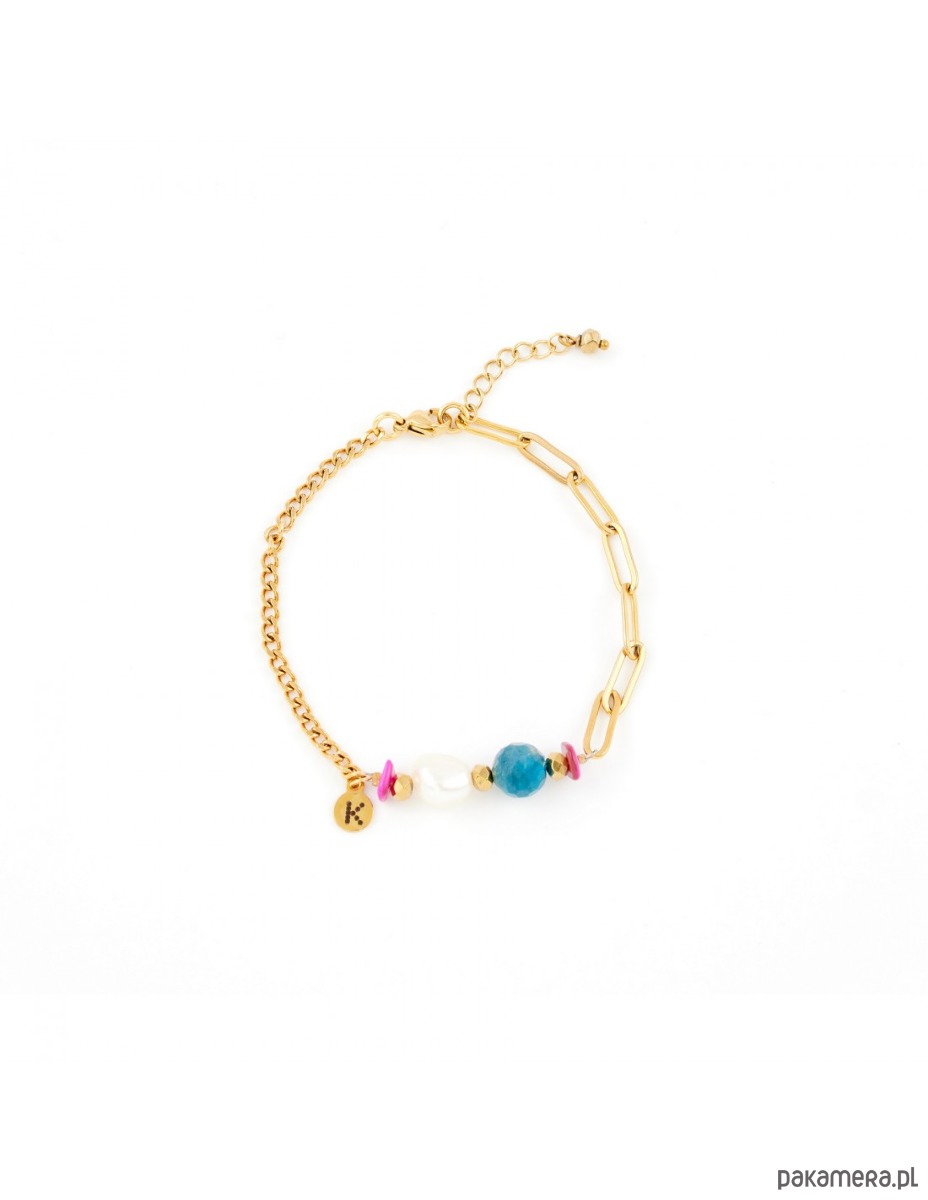 Poznaj nową odsłonę Bestsellera! Tym razem niezwykle letnie i eleganckie połączenie naturalnych Pereł i Apatytu podkręcone mocnym różem w postaci muszli. Pozłacaną bransoletkę wykonałyśmy z dwóch łańcuchów o różnych splotach oraz naturalnych Pereł i Apatytu.