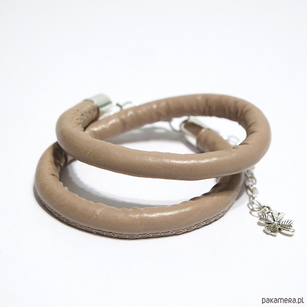 Bransoletka - Beżowa - gruby rzemień, owijana