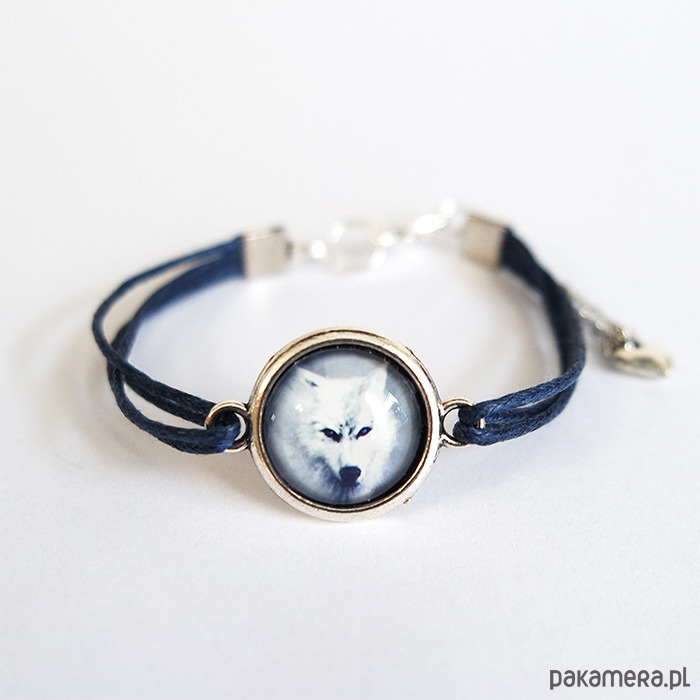 Bransoletka - Biały wilk 2 - granatowa, sznurki