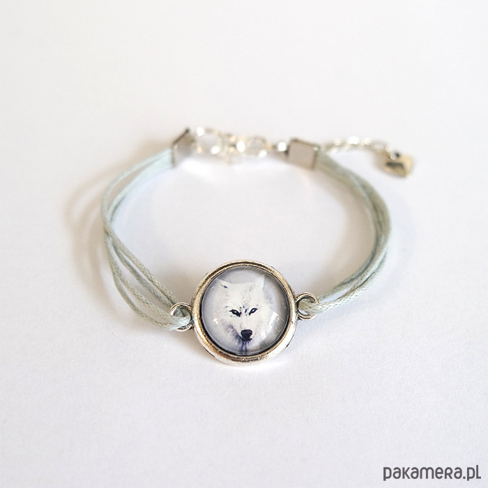 Bransoletka - Biały wilk - jasno szara, sznurki