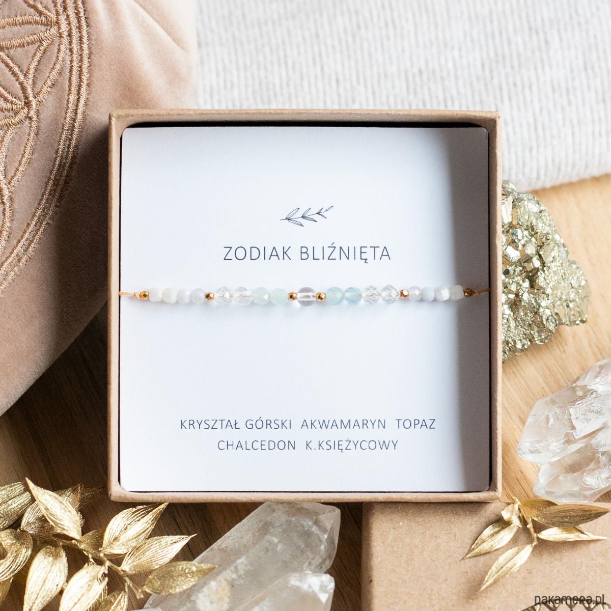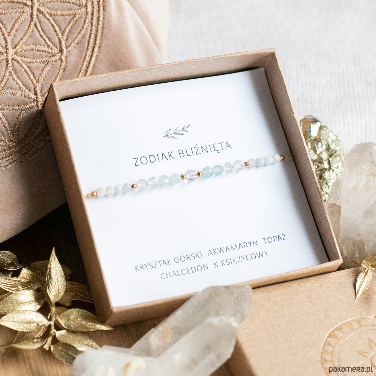 Bransoletkę pakujemy w eleganckie pudełko z opisem właściwości kamieni.