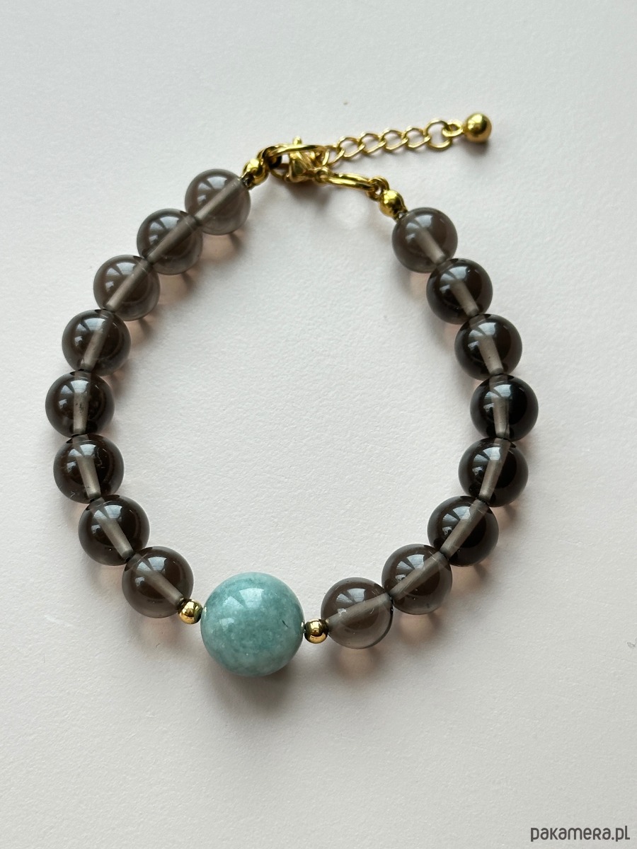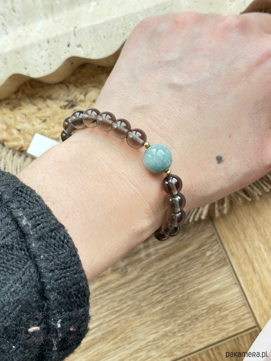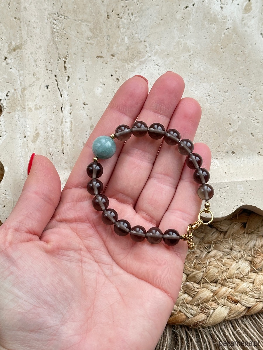 Przepiękna bransoletka, wykonana ręcznie z kwarcu dymnego i jadeitu , jadeitu