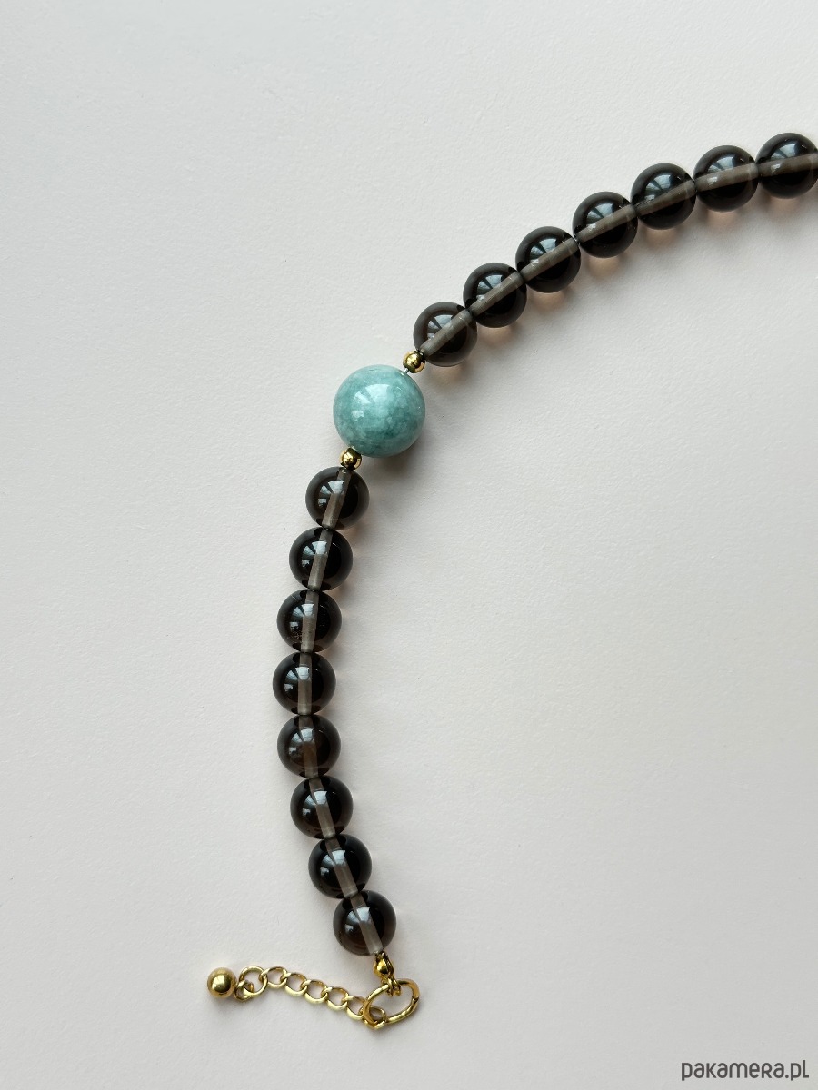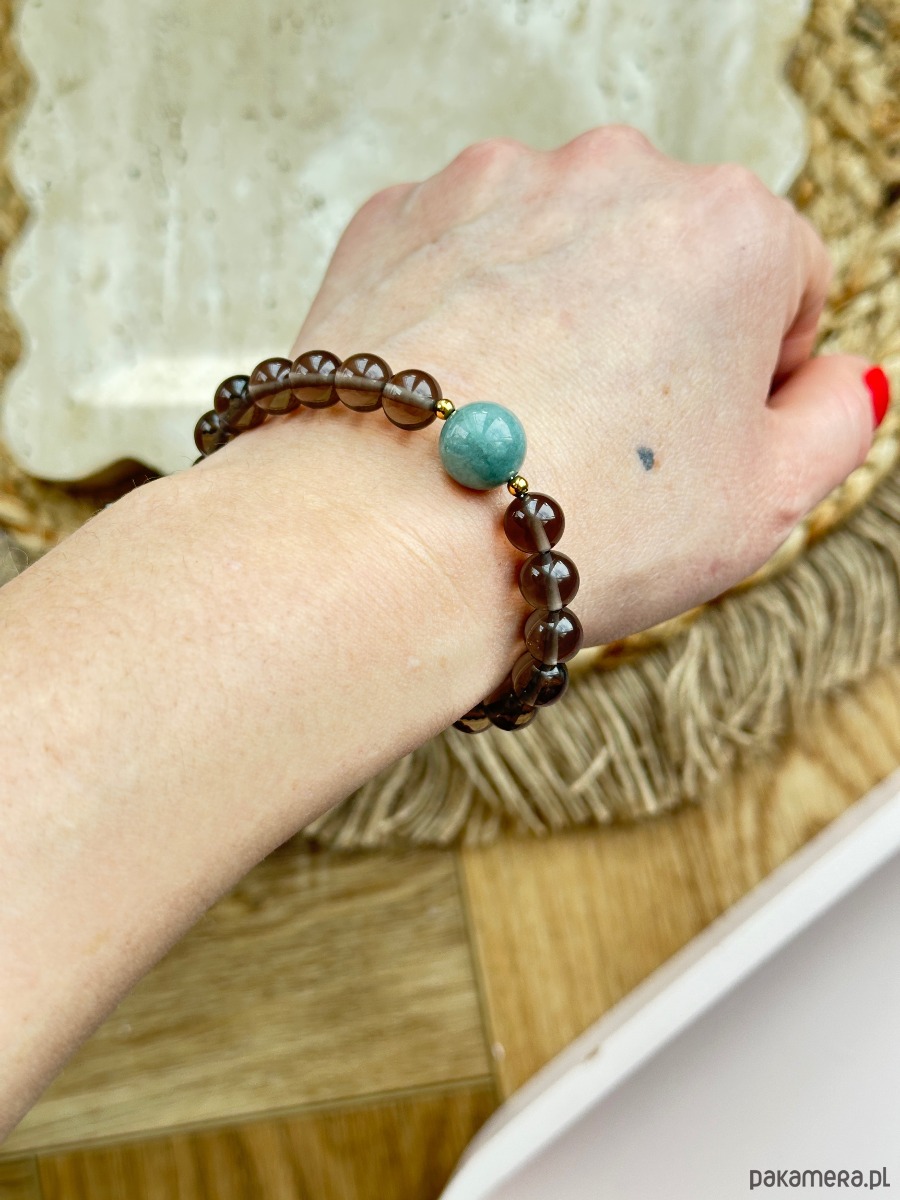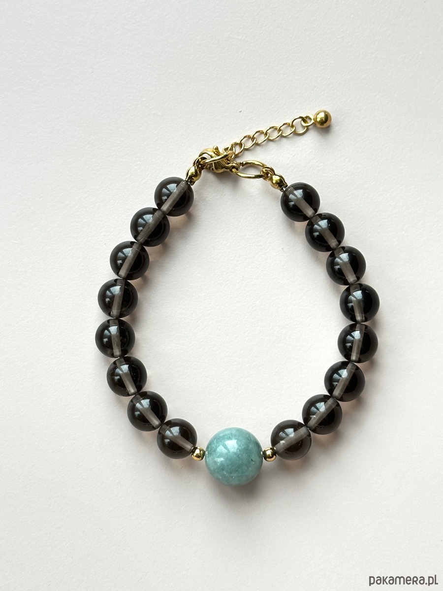 Przepiękna bransoletka, wykonana ręcznie z kwarcu dymnego i jadeitu , jadeitu