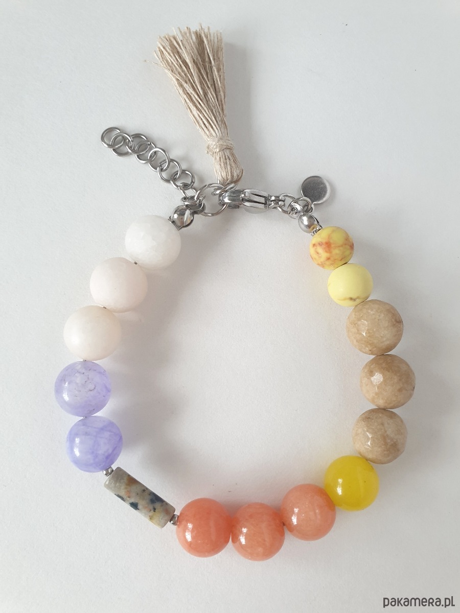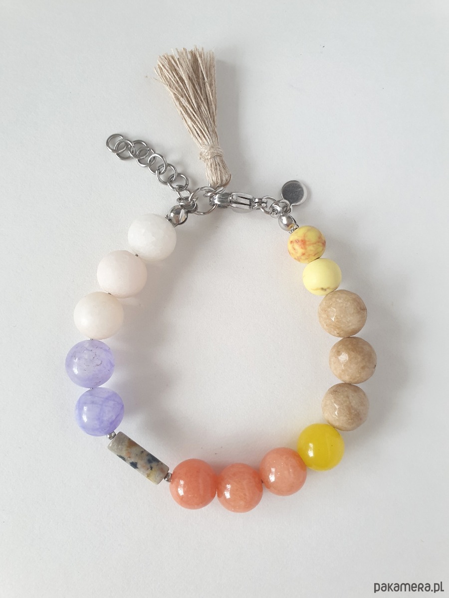 Bransoletka BOHO ART jadeit, jaspis, fiolet, żółty, beż, krem, rudy