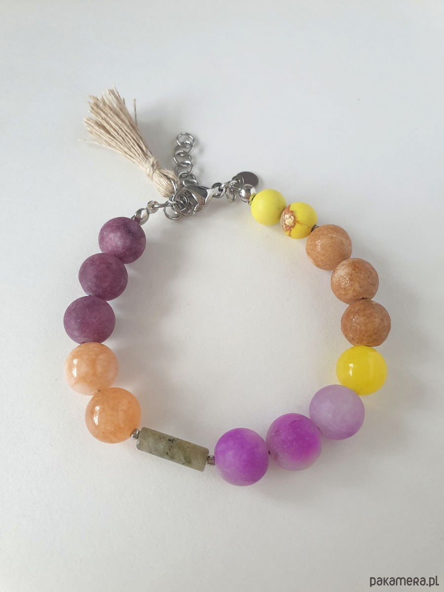 Bransoletka BOHO ART jadeit, jaspis, labradoryt, fiolet, żółty, beż