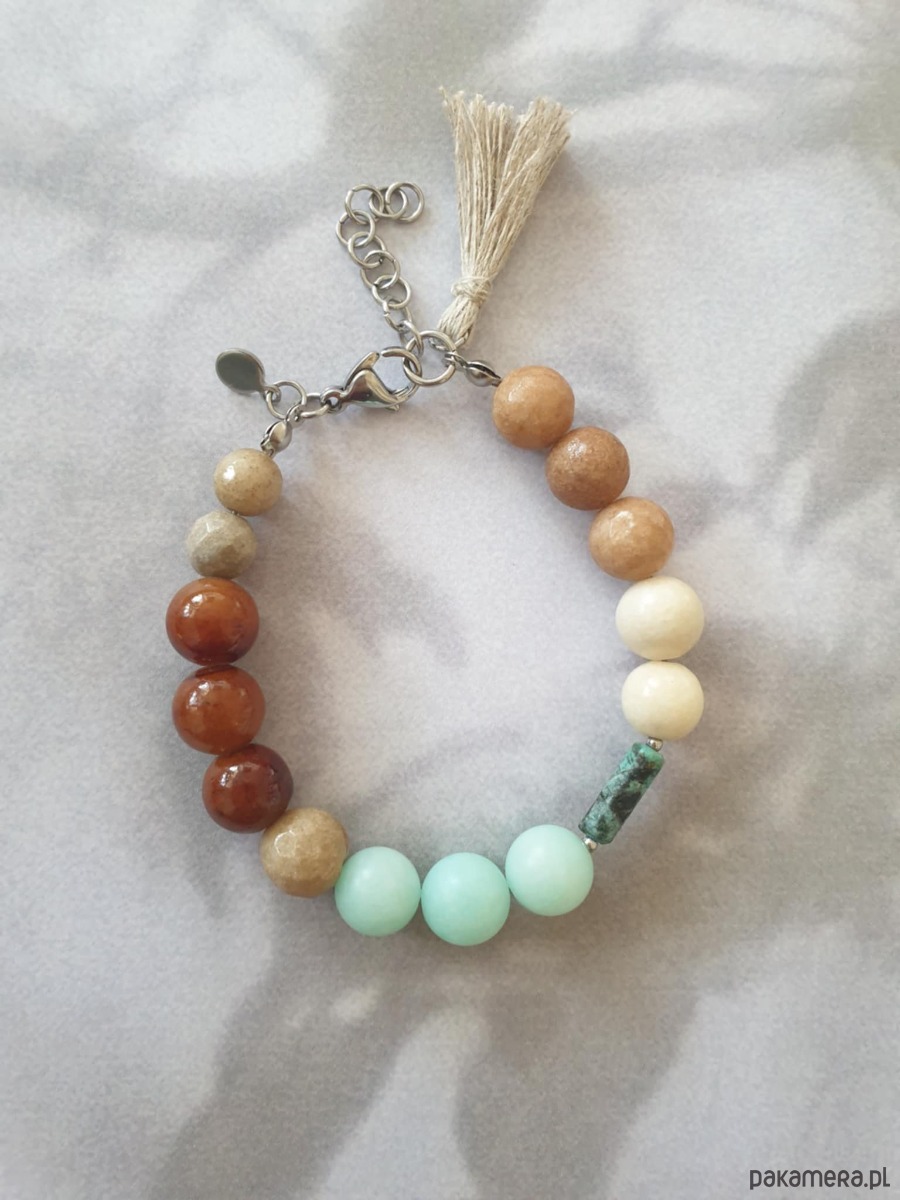 Bransoletka BOHO ART jadeit, turkus, brąz, beż, krem