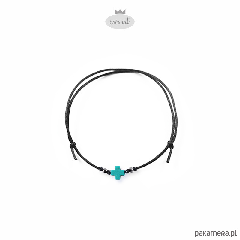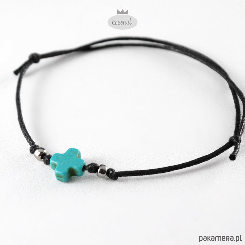 krzyżyk z howlitu w kolorze turkusowym, ok. 9 mm + koraliki toho w kolorze stali.