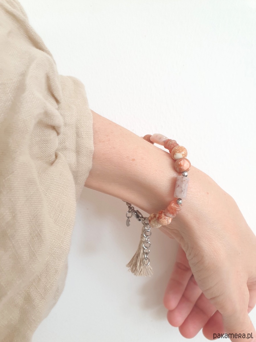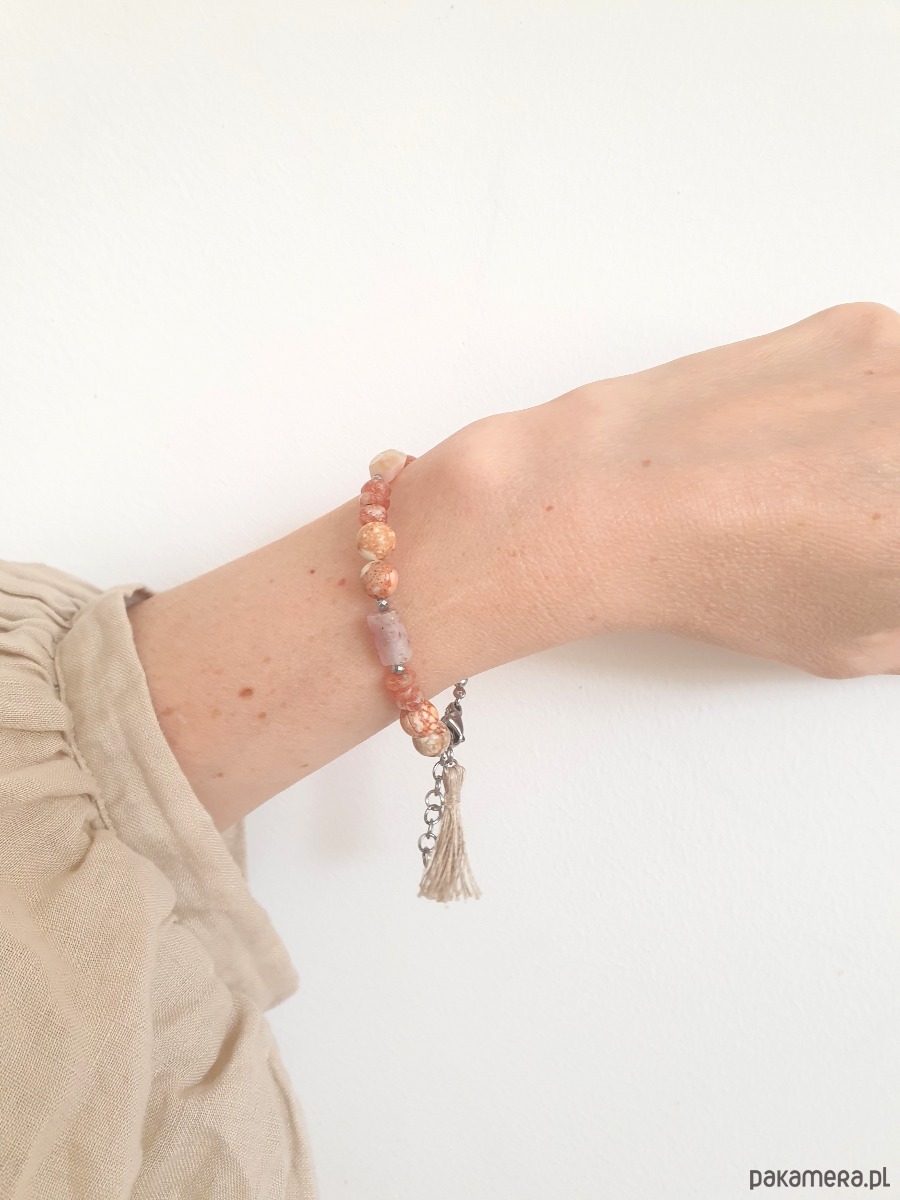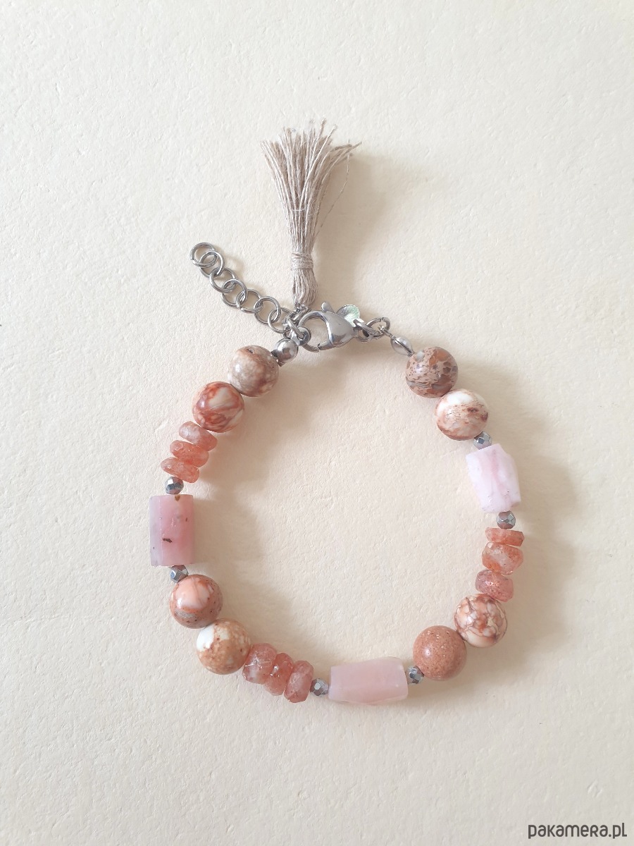 Bransoletka BOHO opal różowy, jaspis cesarski, kamień słoneczny