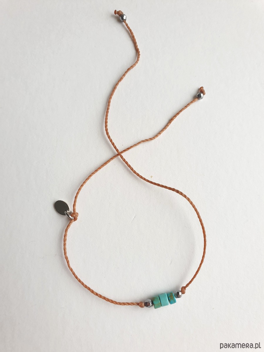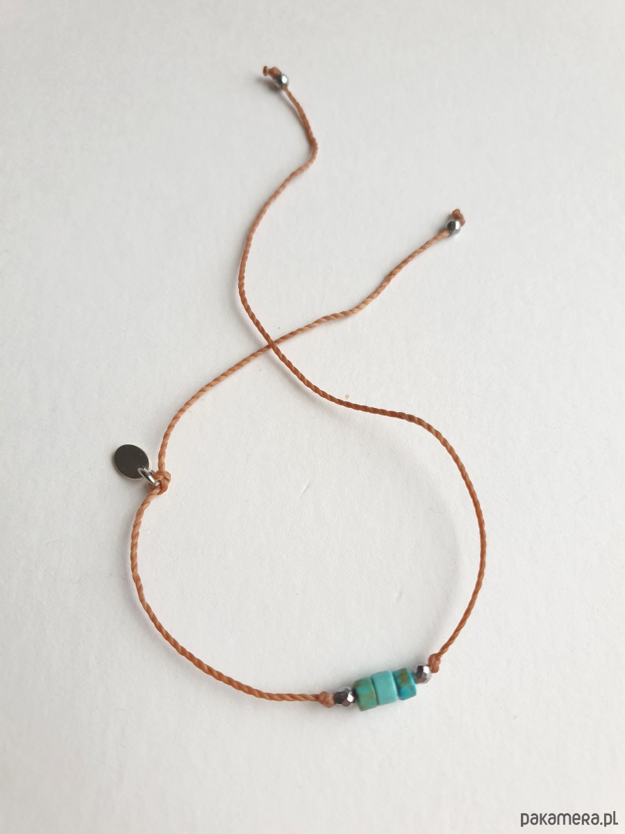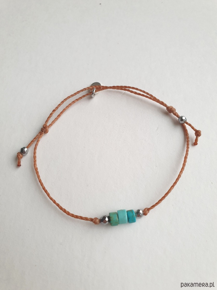Długość maksymalna bransoletki 28 cm. Do zawiązania. Wielkość turkusowych kamieni ok 4 mm, wielkość małych kulek 3 mm, nić grubość ok 1 mm