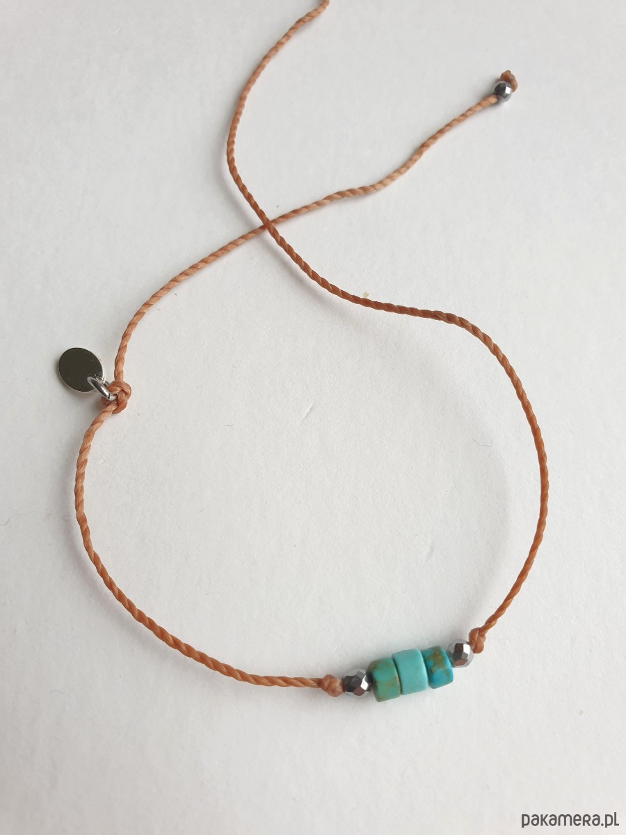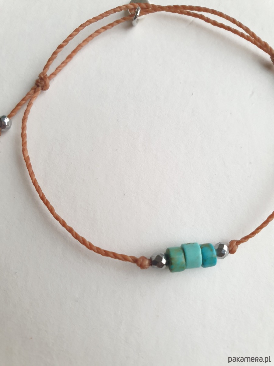 Bransoletka BOHO sznurkowa beżowy, turkus, hematyt