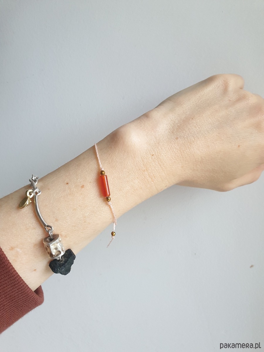 Bransoletka BOHO sznurkowa cielista, karneol, hematyt