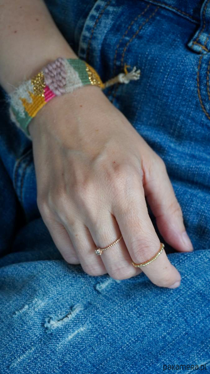 Bransoletka ręcznie tkana na krośnie, wiązana - Słońcem Tkane