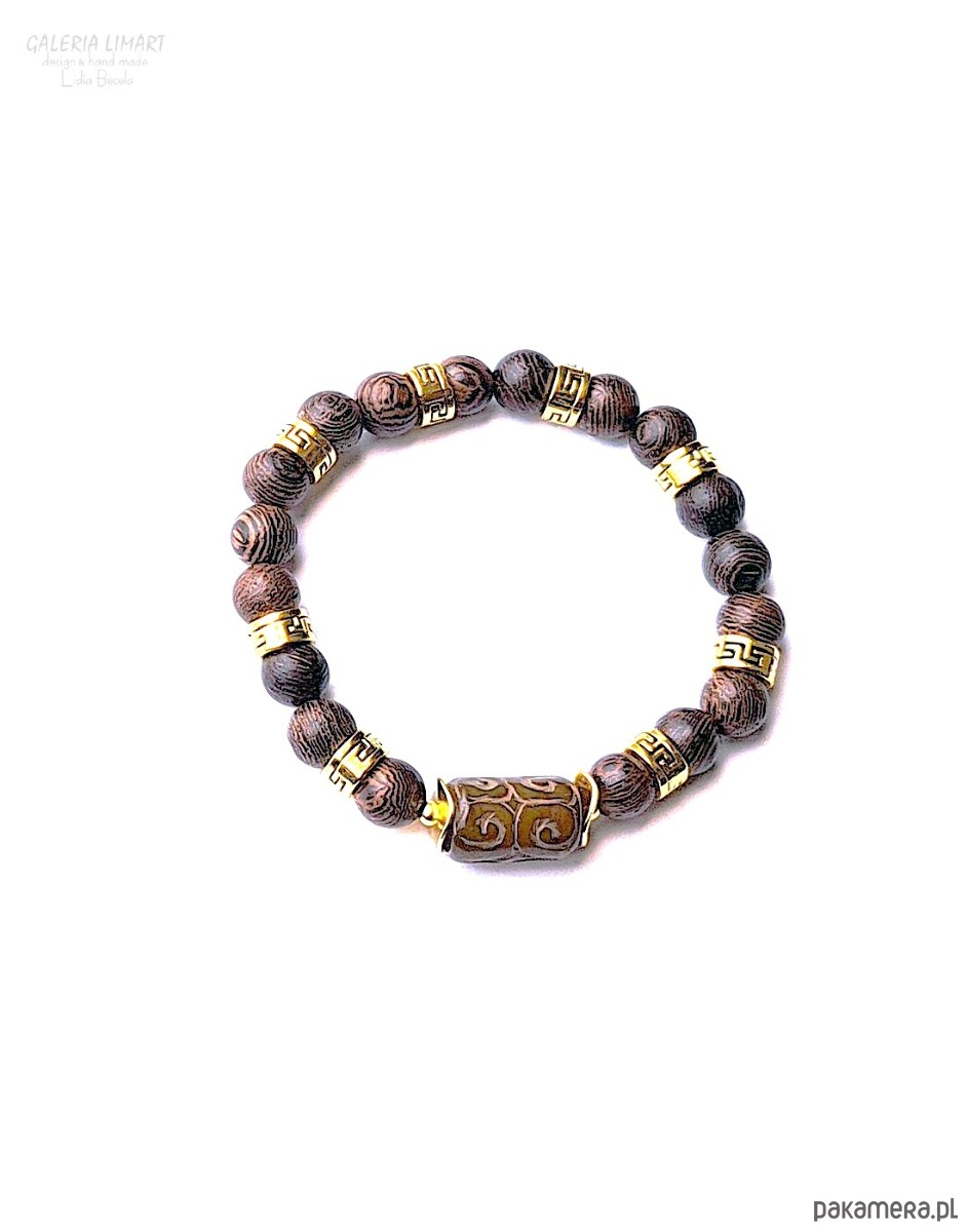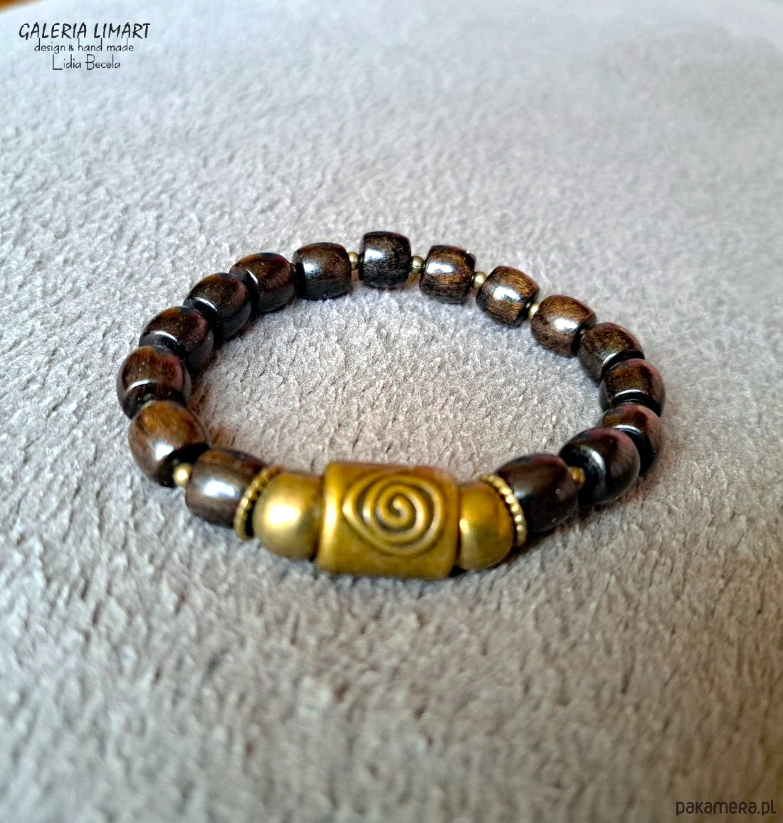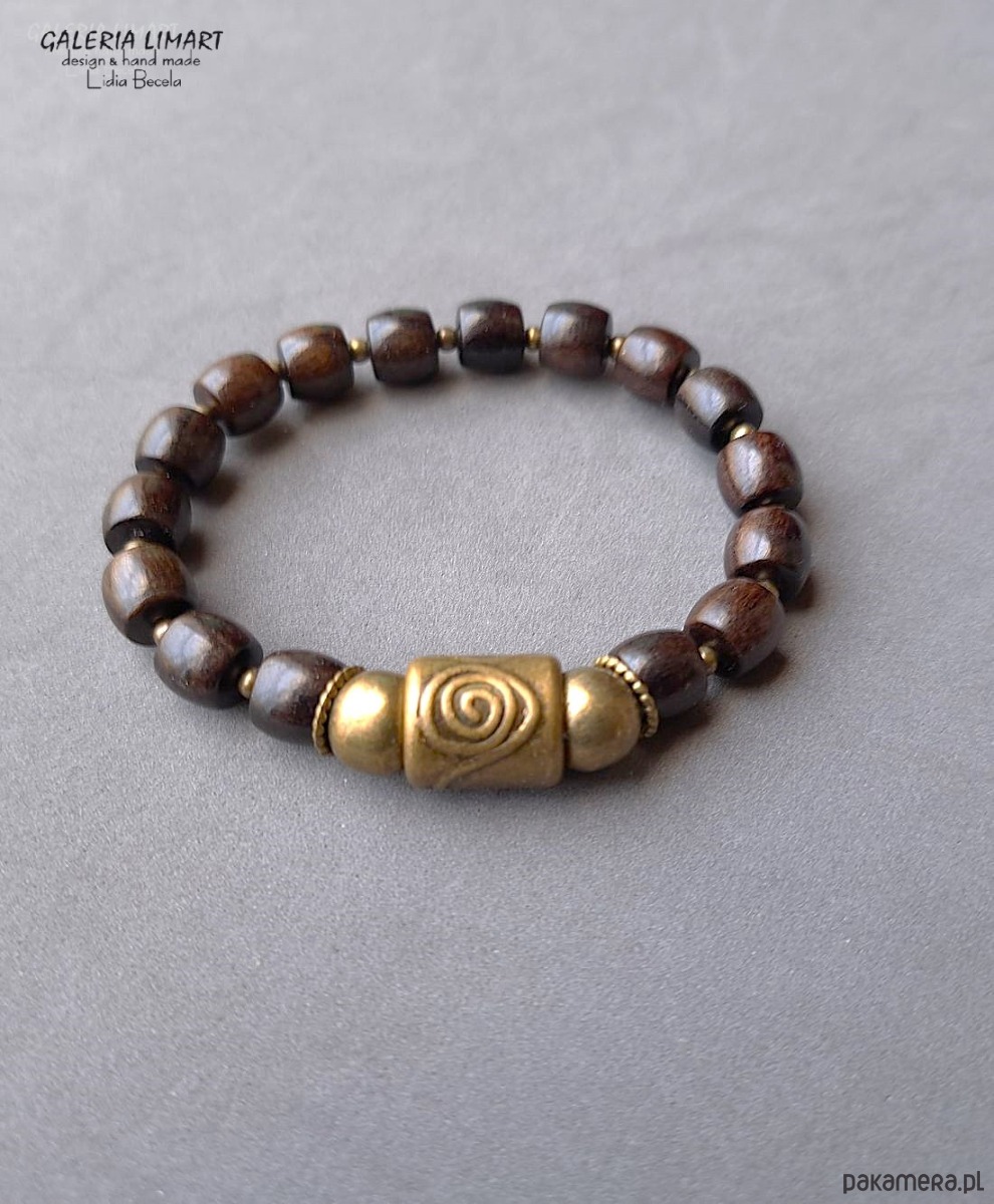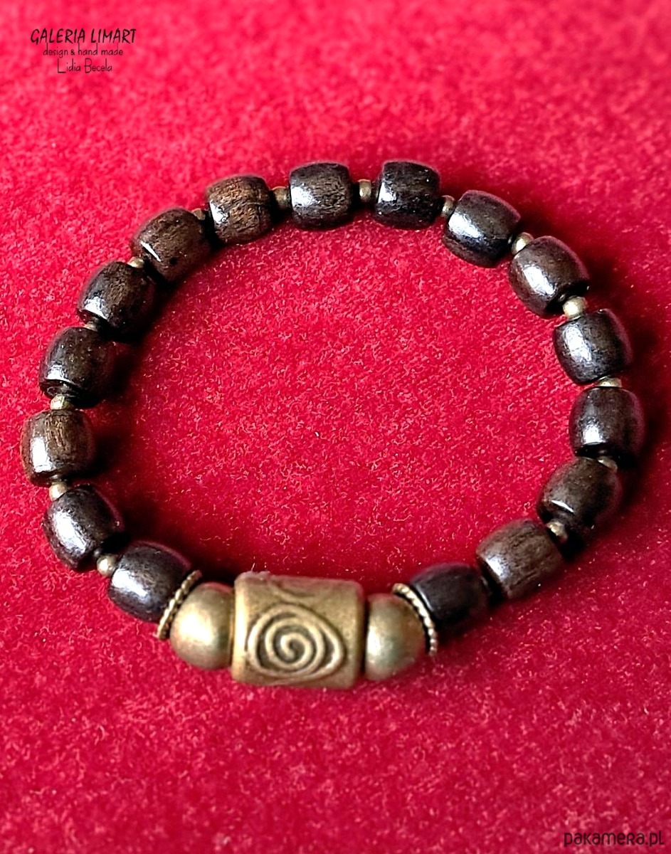 Bransoletka boho z drewna aloesowego i mosiądzu znakomity prezent unisex